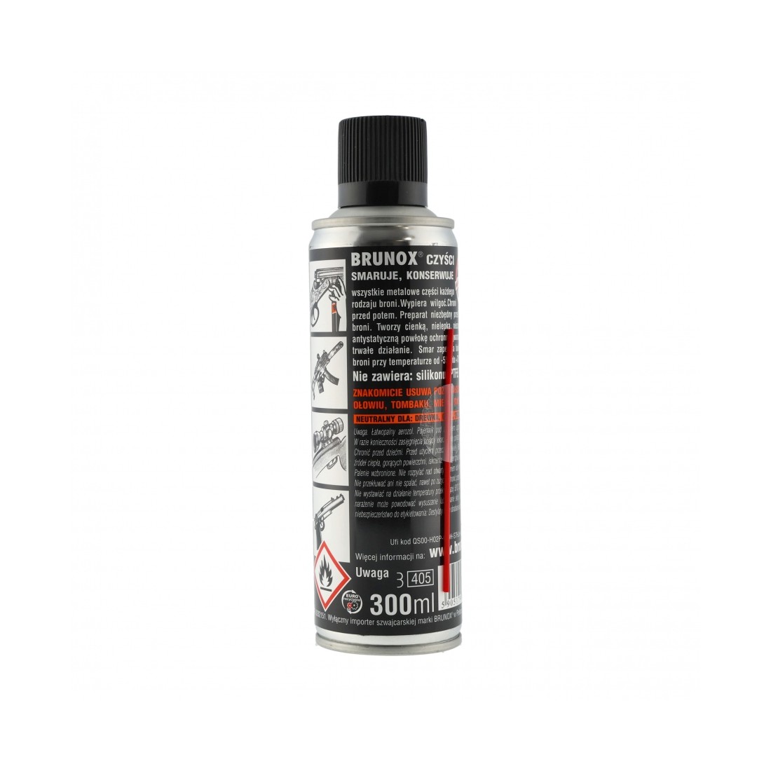 Zaawansowana formuła Brunox Gun Care wnika głęboko w trudno dostępne miejsca, dokładnie pokrywając wszystkie elementy podczas aplikacji. Preparat usuwa pozostałości prochu, nagaru, niklu, tombaku oraz miedzi, neutralizuje kwasy powstałe po strzale i tworzy cienką, trwałą warstwę ochronną. Dzięki temu broń działa płynnie, a ryzyko korozji zostaje zminimalizowane nawet przy intensywnym użytkowaniu.