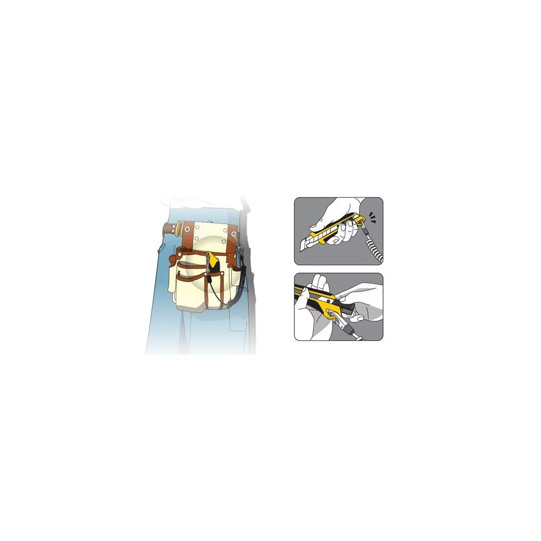 Przypięta linka nie przeszkadza w pracy ani też w wymianie ostrza, otwór pozwala na wygodne powieszenie noża na ścianie czy też na tablicy z narzędziami.