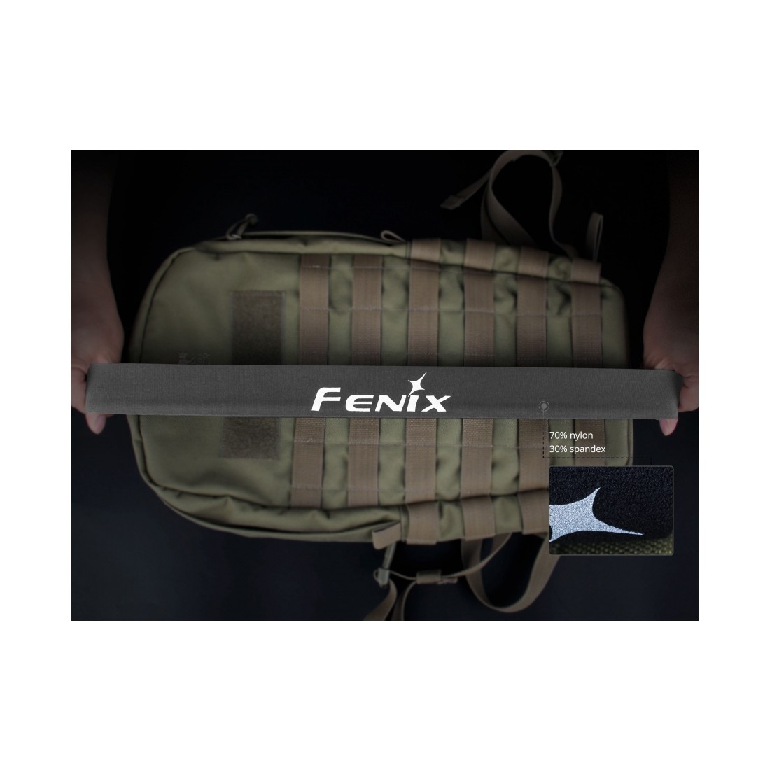 Materiał nie ulega deformacji i rozciągnięciu, dlatego opaska pasuje na każdy obwód głowy. W części czołowej (od wewnętrznej strony) naniesiono silikonową wstawkę, która zatrzymuje wilgoć, dzięki czemu pot nie zalewa nam oczu podczas wzmożonego wysiłku. Z przodu i z tyłu naniesiono odblaskowe dodatki (logo Fenix, 3 linie), zwiększające naszą widoczność oraz bezpieczeństwo po zmroku.