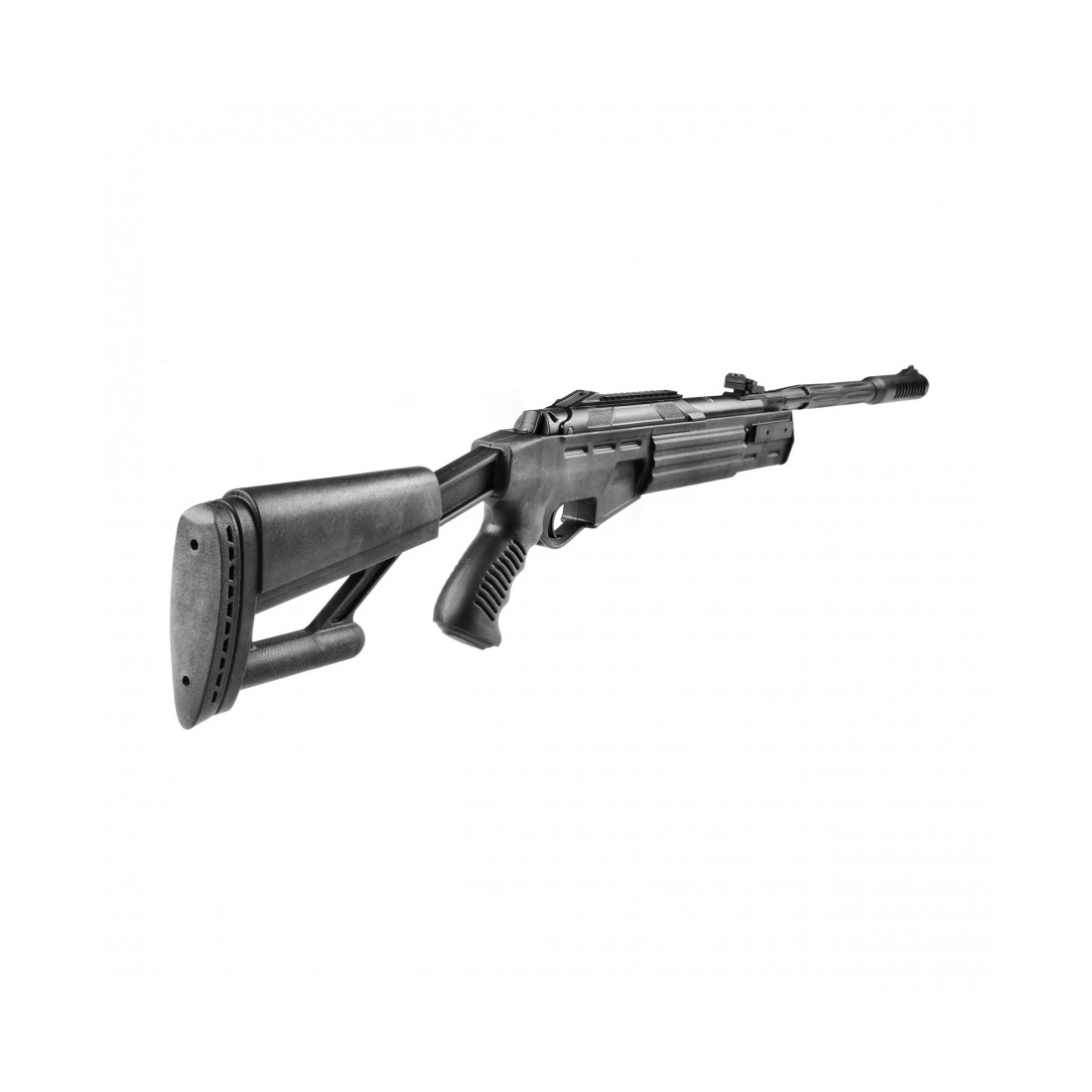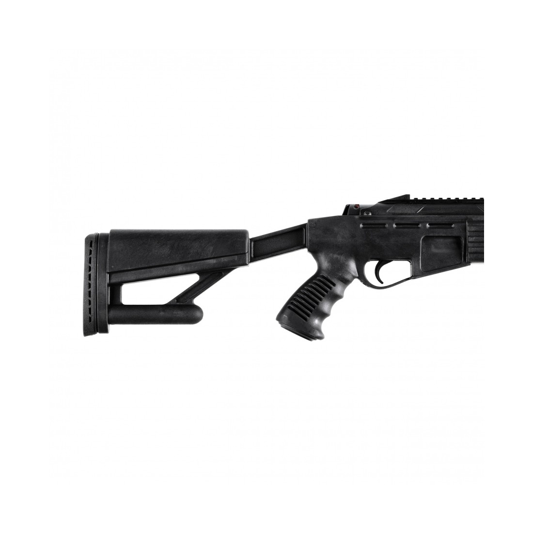 Optima by Hatsan AirTact 4,5 mm to lekka wiatrówka sprężynowo- tłokowa, z taktyczną kolbą, chwytem pistoletowym oraz zintegrowanym tłumikiem dźwięku.