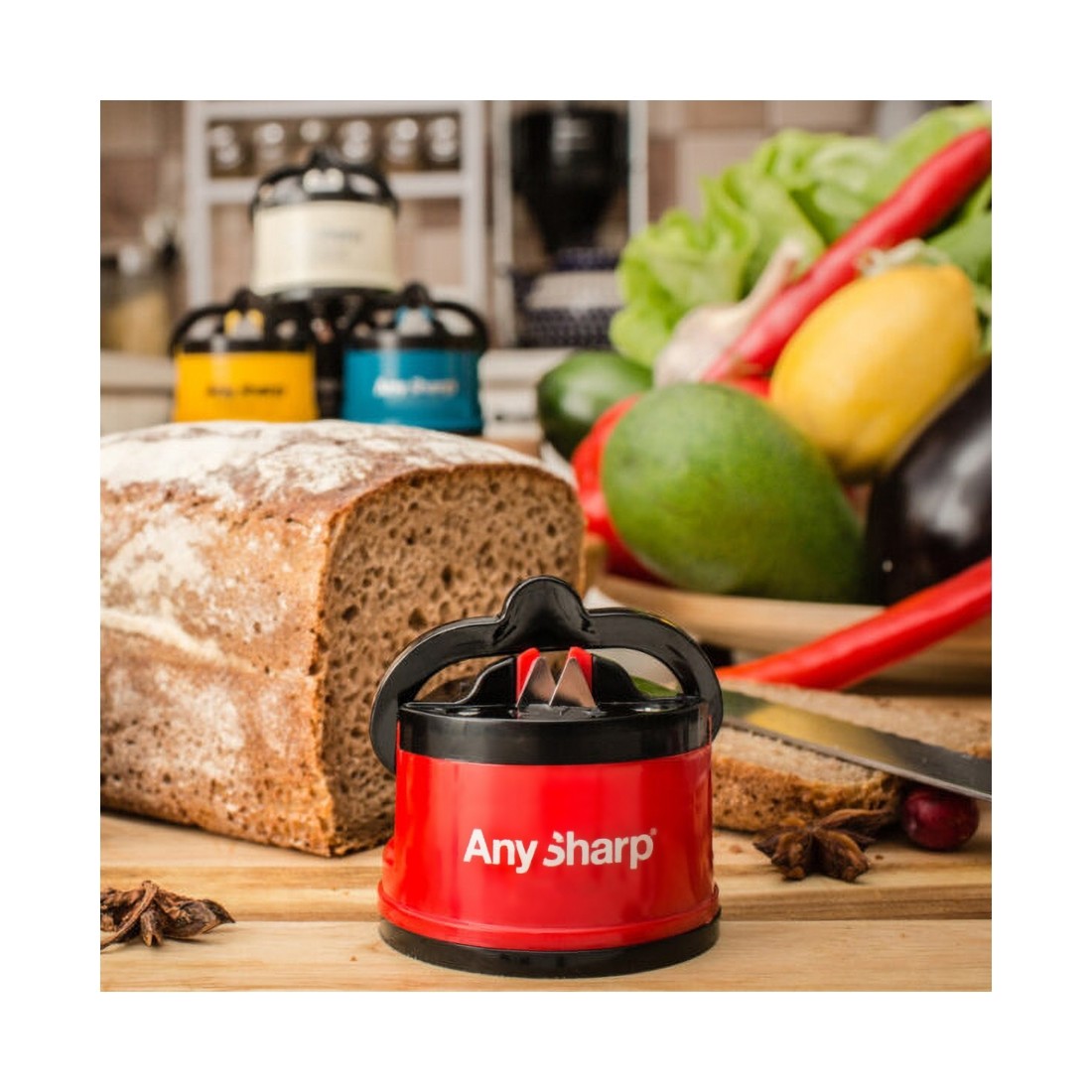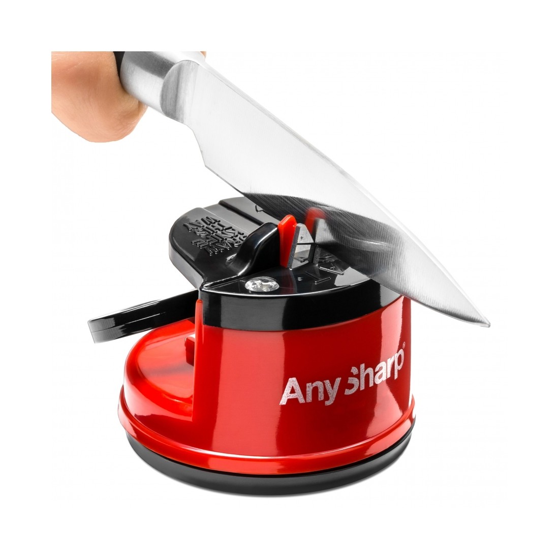 Sam proces ostrzenia jest niezwykle prosty, wymaga jedynie delikatnego przeciągania krawędzi tnącej między płytkami od nasady klingi aż po czubek. Czynność należy powtarzać do uzyskania satysfakcjonującej ostrości. Wygodę użytkowania ostrzałki AnySharp zapewnia podstawa z mocną przyssawką próżniową, która pozwala na stabilne przytwierdzenie osełki do gładkich powierzchni szklanych, metalowych, ceramicznych i plastikowych.
