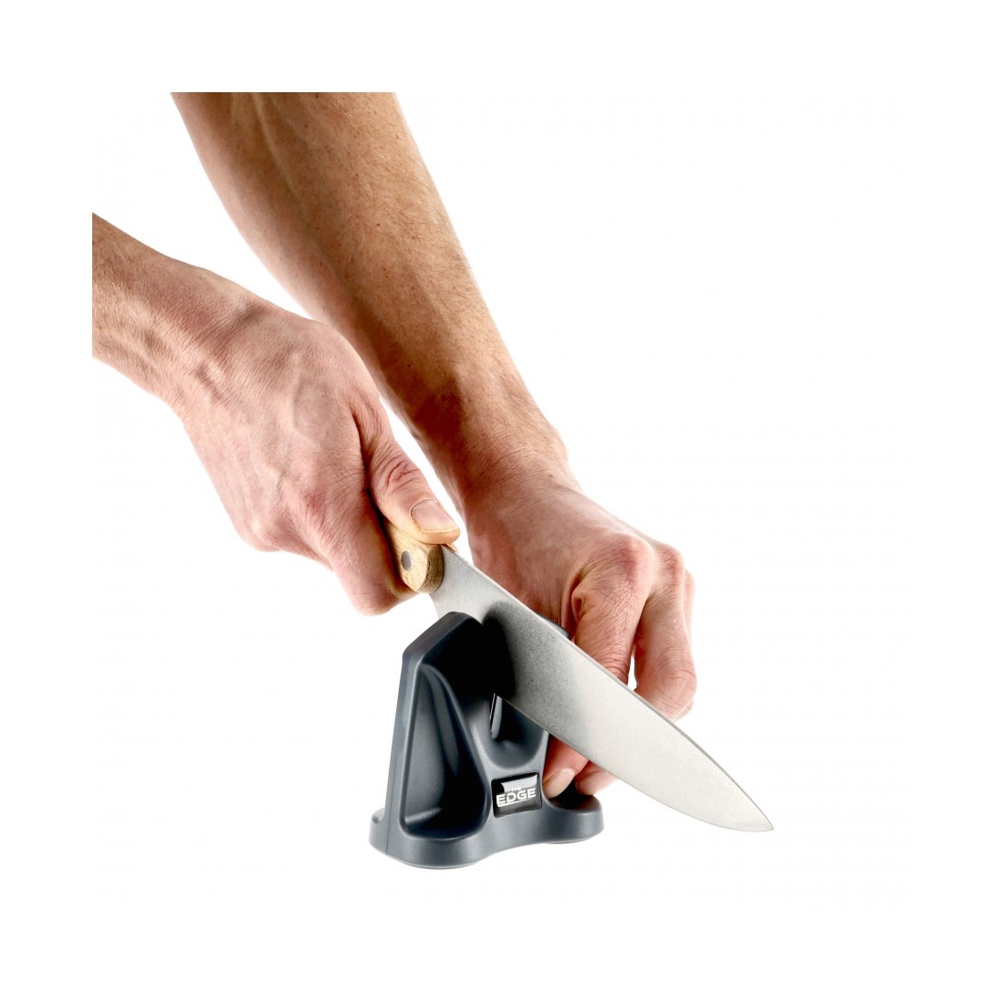 Wyposażona w antypoślizgową podstawę i obustronny uchwyt, zapewnia stabilność i wygodę użytkowania w każdych warunkach. W odróżnieniu od klasycznych ostrzałek typu V, The Edge AutoSHARP posiada system zmiennego kąta ostrzenia, oparty na sprężynowych prętach z węglika wolframu. Dzięki temu kąt dostosowuje się automatycznie do krawędzi noża — niezależnie od jego typu czy profilu ostrza. To rozwiązanie idealne dla osób, które nie znają fabrycznego kąta swojego noża – AutoSHARP zrobi to za Ciebie, przywracając ostrzu pierwotną ostrość w kilka chwil.