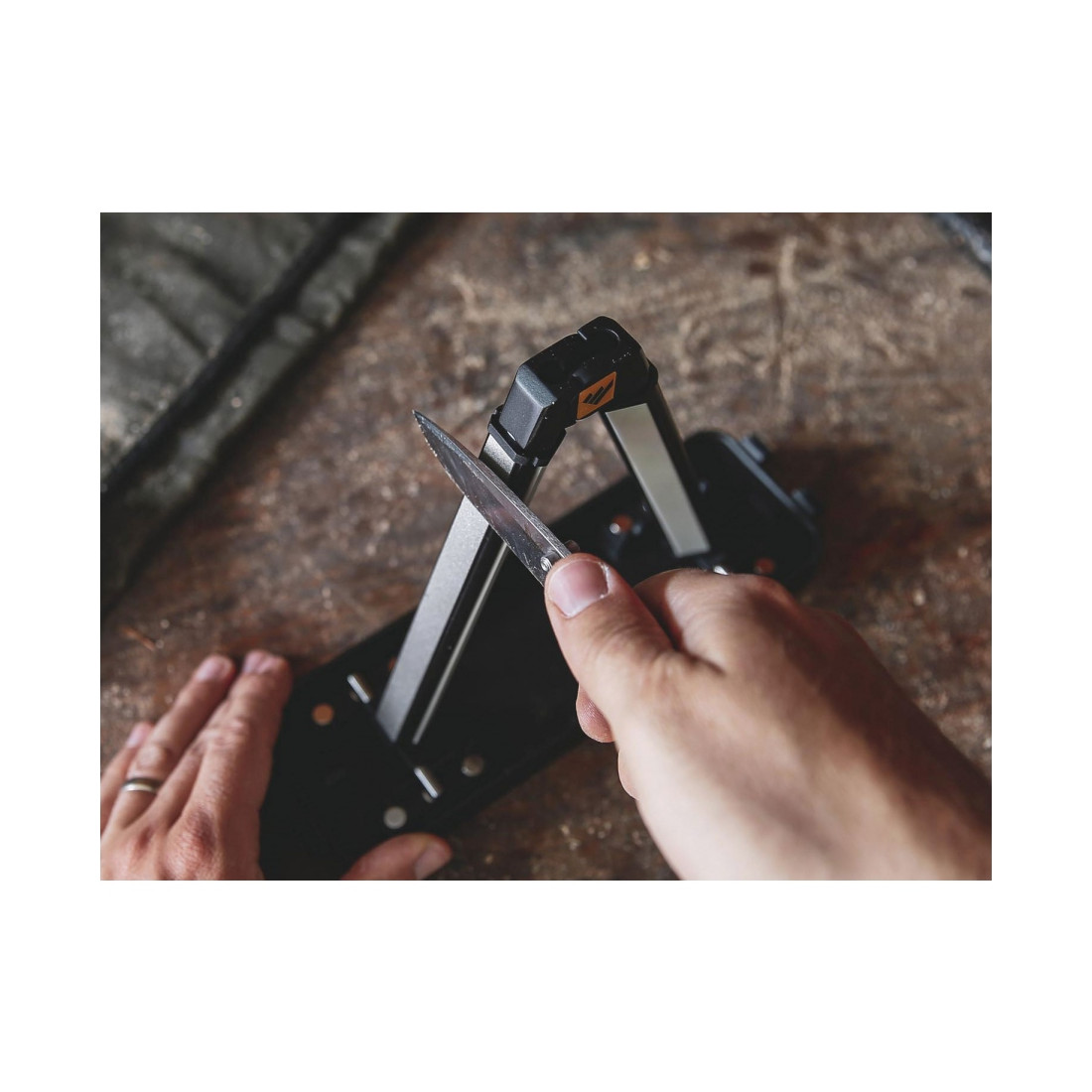 System można w bardzo szybki sposób rozłożyć oraz równie łatwo złożyć. Wystarczy jedynie unieść do góry skrzydła pokrywy, wyjąć trójkątny system ostrzący oraz zamocować go pod wybranym kątem na magnetycznych prowadnicach o 5 zdefiniowanych kątach. Proces przygotowanie ostrzałki do pracy zajmuje zaledwie kilka sekund, osełka po złożeniu zajmuje niewiele miejsca, co pozwala także na jej użytkowanie w terenie. Stabilność pracy zapewniają gumowe nóżki, zapobiegające przesuwaniu się ostrzałki na gładkiej powierzchni.