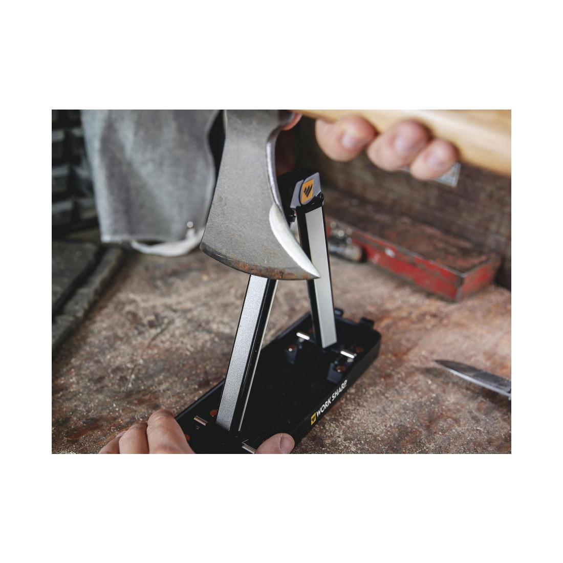 Work Sharp Angle Set to wszechstronna ostrzałka ręczna, która dzięki zastosowaniu technologii Tri-brasive umożliwia błyskawiczną zmianę kąta ostrzenia oraz gradacji powierzchni ściernej. Ten innowacyjny system pozwala na ostrzenie noży o gładkiej i ząbkowanej krawędzi tnącej, noży kuchennych, noży do filetowania oraz ostrzy narzędzi warsztatowych, dlatego stanowi dokonały wybór dla każdego pasjonata i użytkownika noży, eliminujący konieczność zakupu dodatkowych osełek.