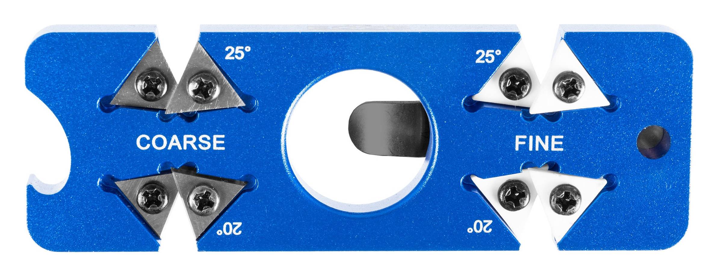 Ostrzałka typu V została wyposażona w dwa najczęściej stosowane kąty ostrzenia. Kąt 20° idealnie sprawdzi się do noży kuchennych, scyzoryków i folderów, natomiast 25° przeznaczony jest do noży EDC, myśliwskich i survivalowych. Dzięki temu nawet osoby bez doświadczenia mogą szybko i prawidłowo naostrzyć ostrze.