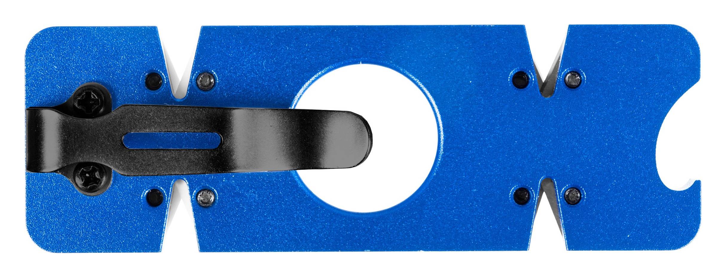 Dzięki klipsowi ostrzałkę można wygodnie przypiąć do kieszeni, paska lub systemu MOLLE. Dodatkowy otwór pozwala na montaż linki, smyczy lub paracordu, co zwiększa wygodę podczas aktywności outdoorowych.