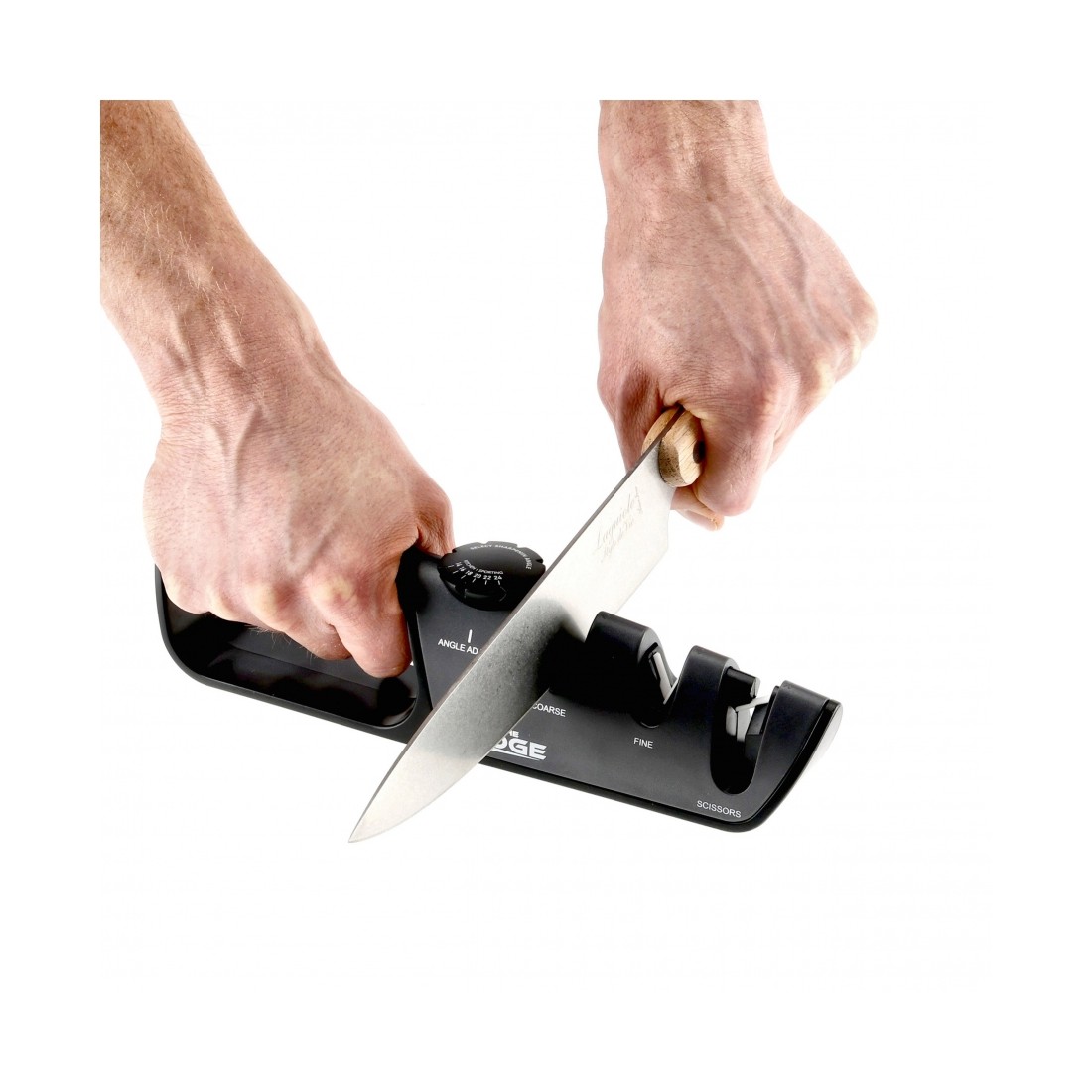 The Edge PointSHARP to wymarzona ostrzałka dla każdego posiadacza noża, wyposażona w płynną regulację kąta ostrzenia 14-24° oraz 3 strefy ostrzenia, dzięki którym wyostrzysz i wypolerujesz noże kuchenne, foldery edc, noże myśliwskie oraz wiele narzędzi domowych.