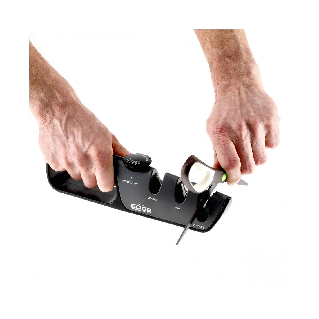 The Edge PointSHARP ma 3 strefy ostrzące, dzięki którym możemy szybko wyostrzyć i wypolerować noże składane, noże kuchenne, noże do filetowania, narzędzia outdoorowe, a także domowe nożyczki, których ostrzenie bywa zazwyczaj kłopotliwe