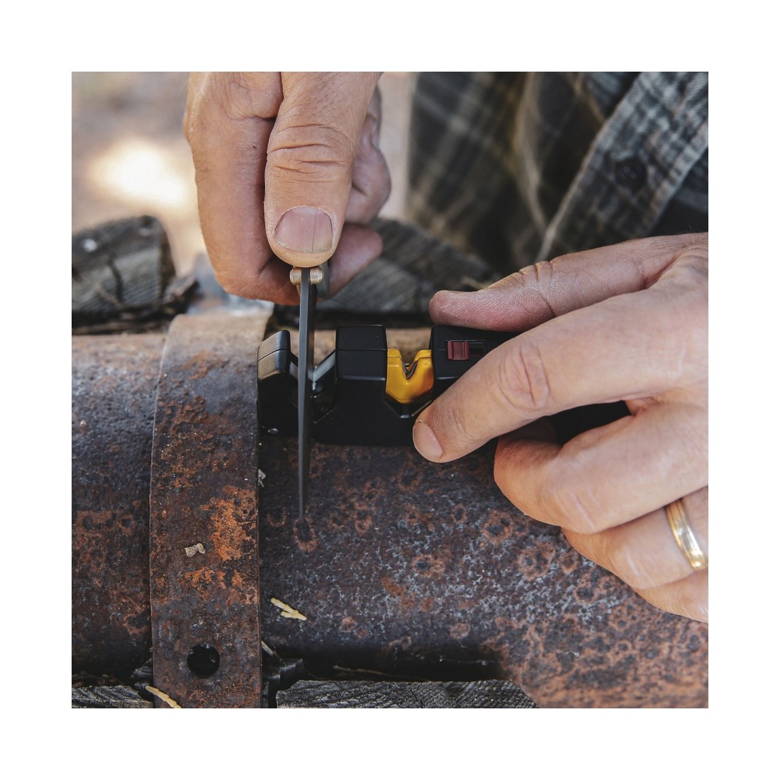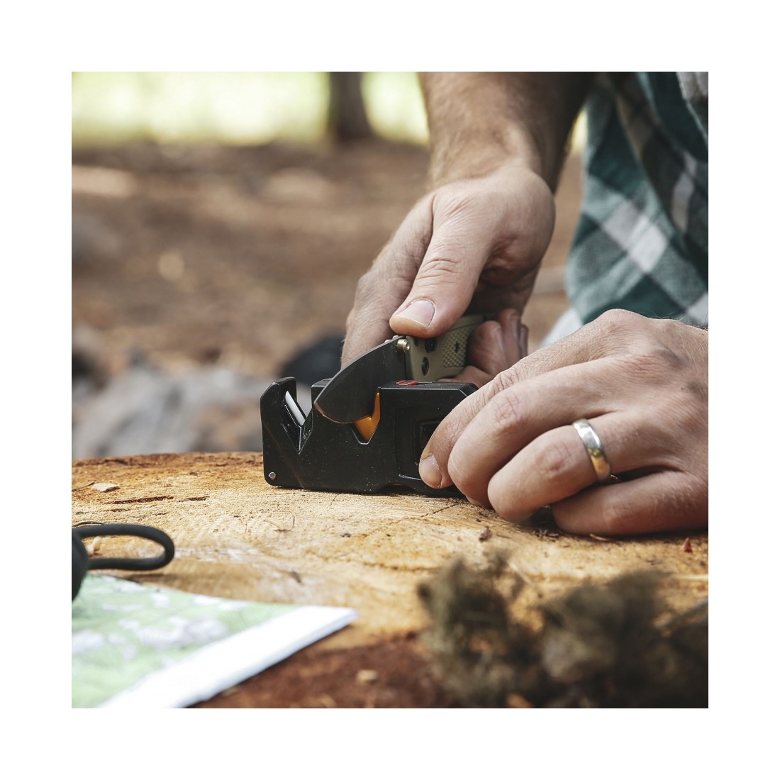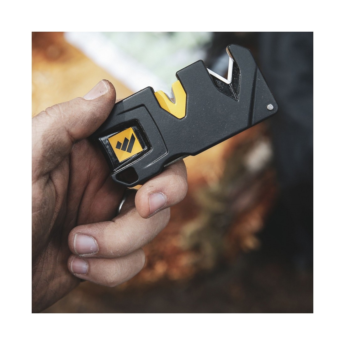 Work Sharp Pivot Plus to kompaktowa ostrzałka turystyczna, wyposażona w 3 powierzchnie ostrzące, dzięki którym efektywnie i szybko naostrzysz nóż zarówno o gładkim, jak i ząbkowanym ostrzu. Work Sharp Pivot Plus to doskonałe rozwiązanie dla pasjonatów outdooru, myśliwych oraz miłośników edc, którzy szukają niewielkiej i wydajnej ostrzałki do codziennego noszenia w plecaku lub kieszeni.