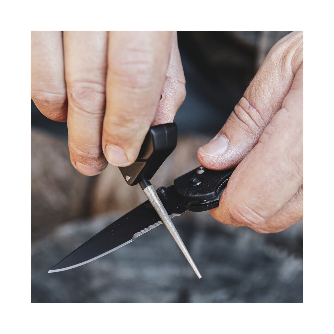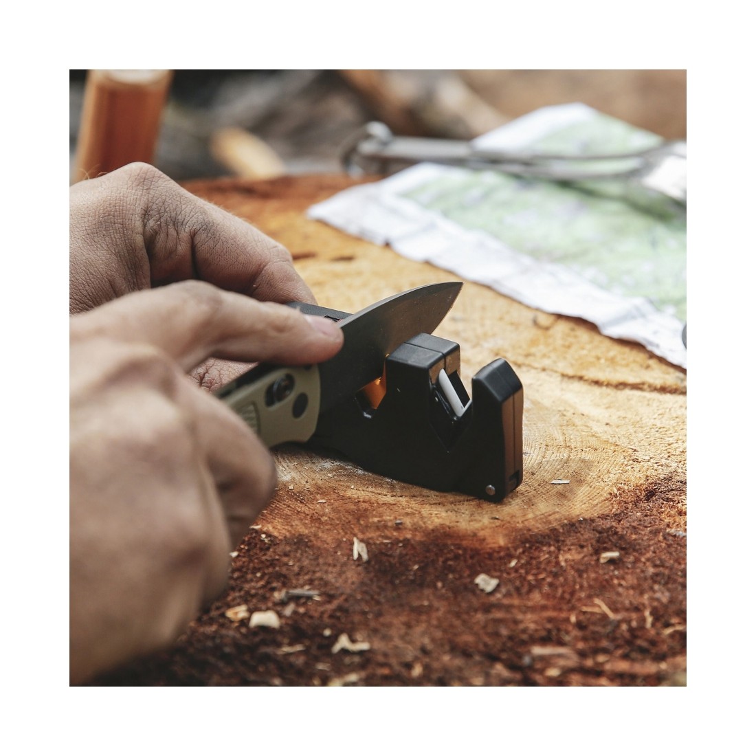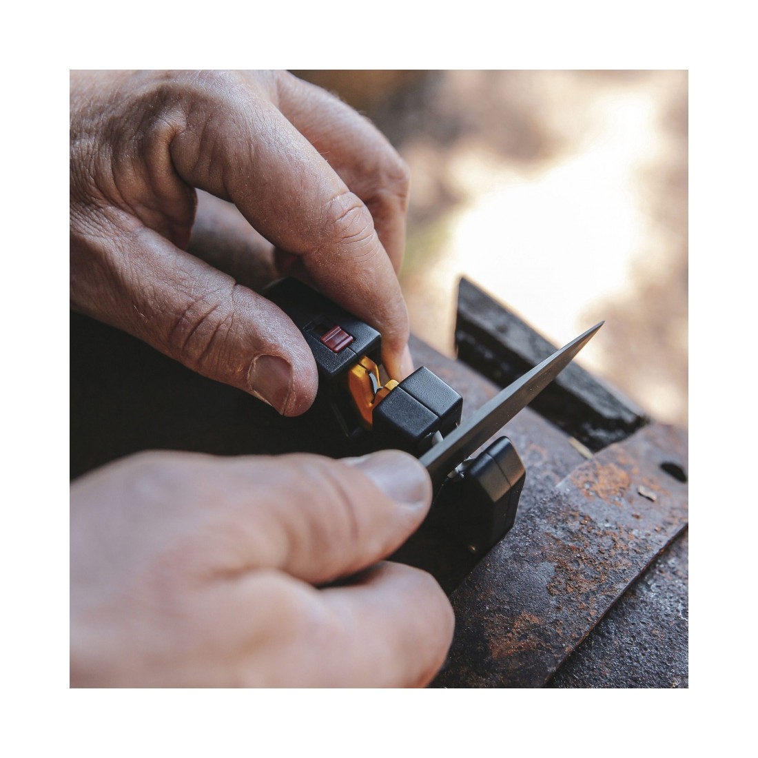 Work Sharp Pivot Plus to kompaktowa ostrzałka turystyczna, wyposażona w 3 powierzchnie ostrzące, dzięki którym efektywnie i szybko naostrzysz nóż zarówno o gładkim, jak i ząbkowanym ostrzu. Work Sharp Pivot Plus to doskonałe rozwiązanie dla pasjonatów outdooru, myśliwych oraz miłośników edc, którzy szukają niewielkiej i wydajnej ostrzałki do codziennego noszenia w plecaku lub kieszeni.