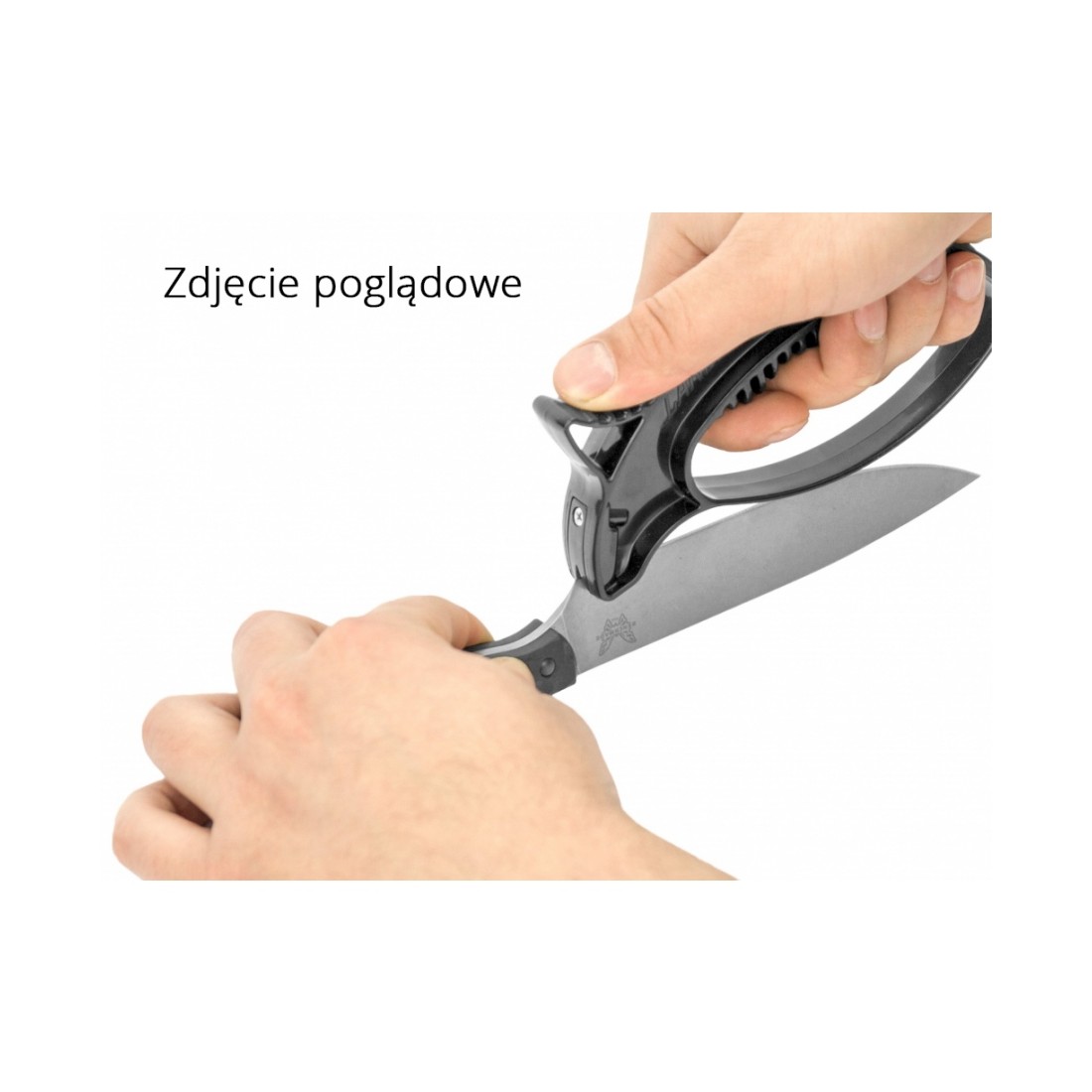 Wycięcie w rękojeści umożliwia wplecenie linki zabezpieczającej. Z uwagi na niezwykle wysoką twardość materiału ściernego, który agresywne zbiera materiał, podczas ostrzenia nie należy mocno dociskać ostrza.