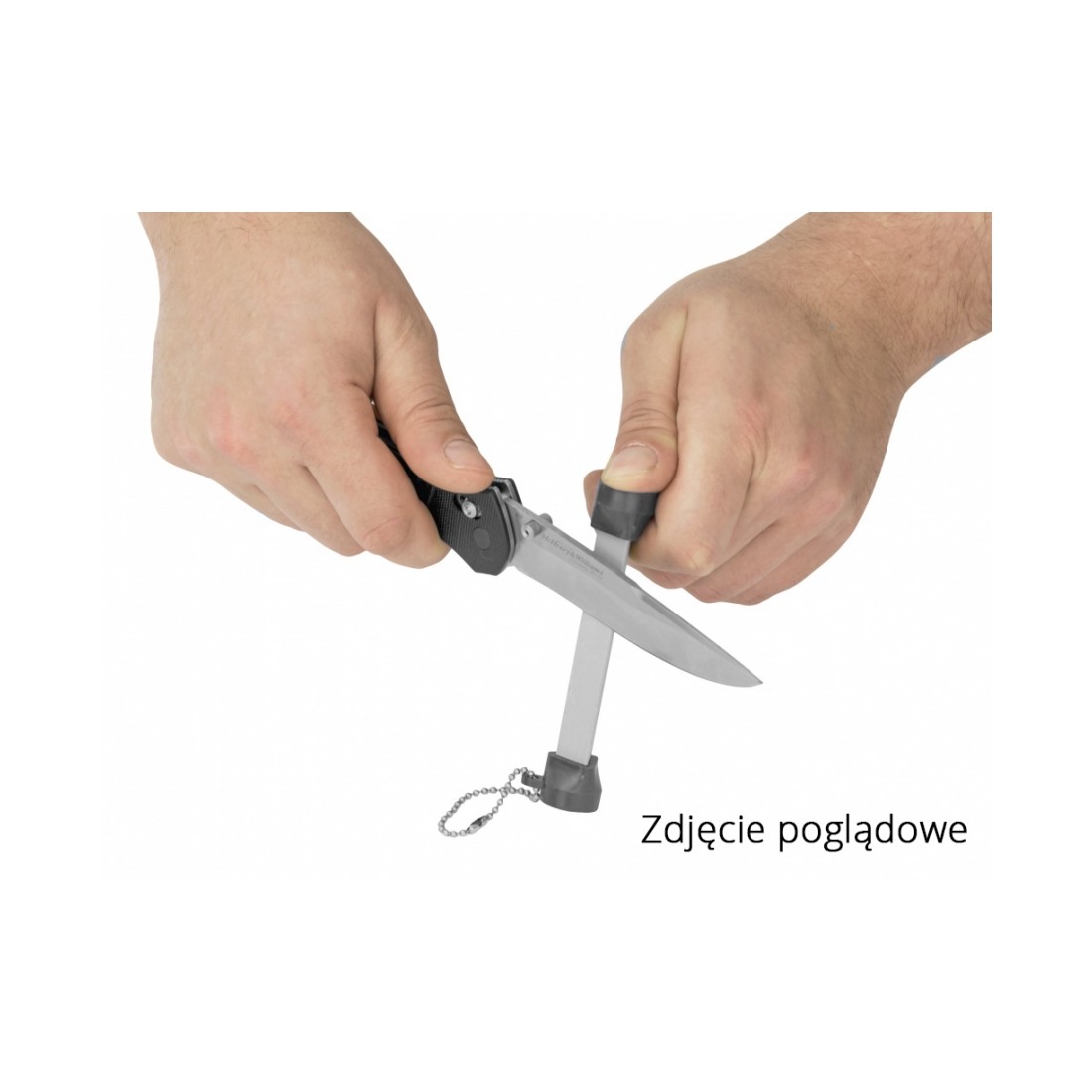 Do ostrzenia służy okrągły pręcik ceramiczny z glinu, który doskonale nadaje się do ostrzenia praktycznie każdego rodzaju stali oraz ostrza. Gradacja medium umożliwia wstępne ostrzenie noża oraz jego szybkie podostrzanie, dlatego stanowi optymalny wybór na samodzielną osełkę.