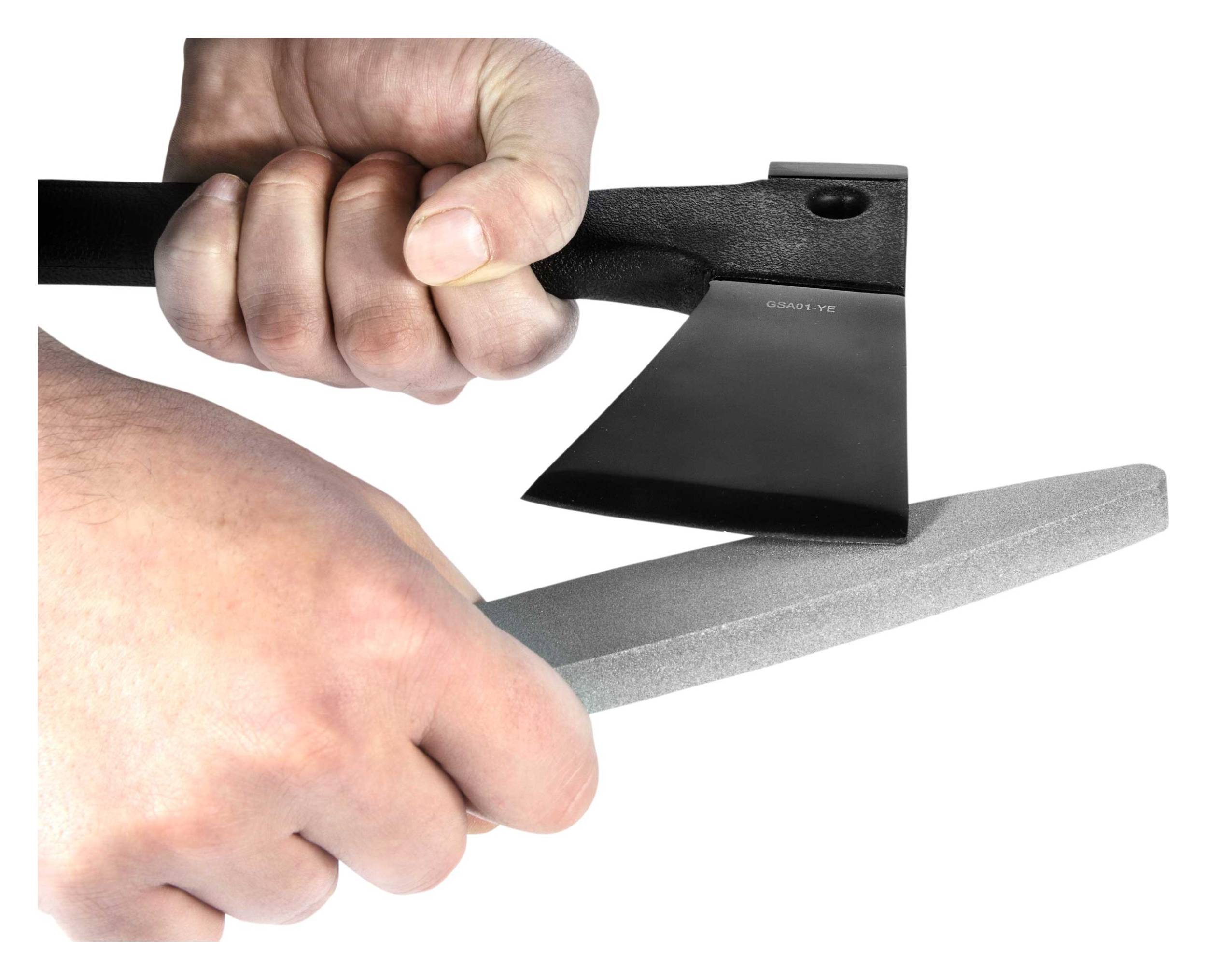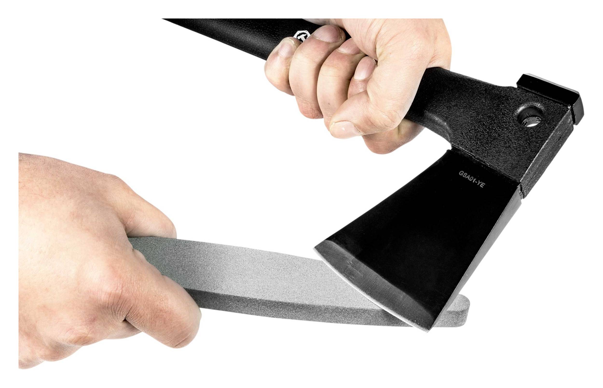 Ergonomiczny, owalny profil ułatwia ostrzenie szerokich krawędzi oraz dużych narzędzi takich jak siekiery, maczety czy ostrza kosiarek. Dzięki temu praca przebiega szybciej i wygodniej.
