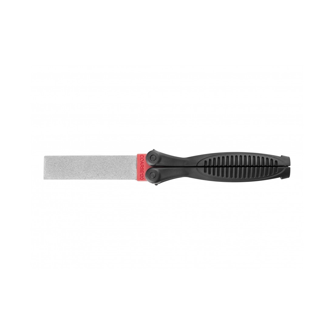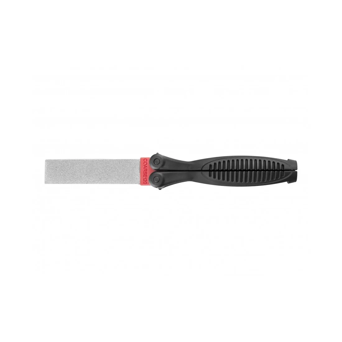 Lansky FP-1260 to składana ostrzałka z dwustronną płytką diamentową o gradacjach 120 coarse oraz 600 fine. Ostrzałka ma składaną konstrukcję wzorowaną na nożach typu motylek, dzięki czemu możemy ją wygodnie przenosić i szybko rozkładać w razie potrzeby.
