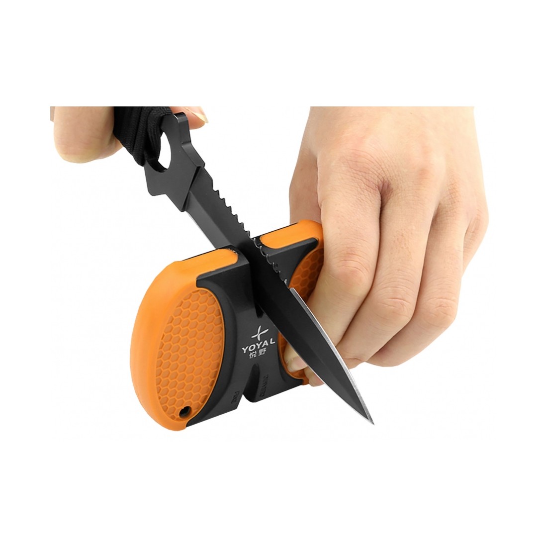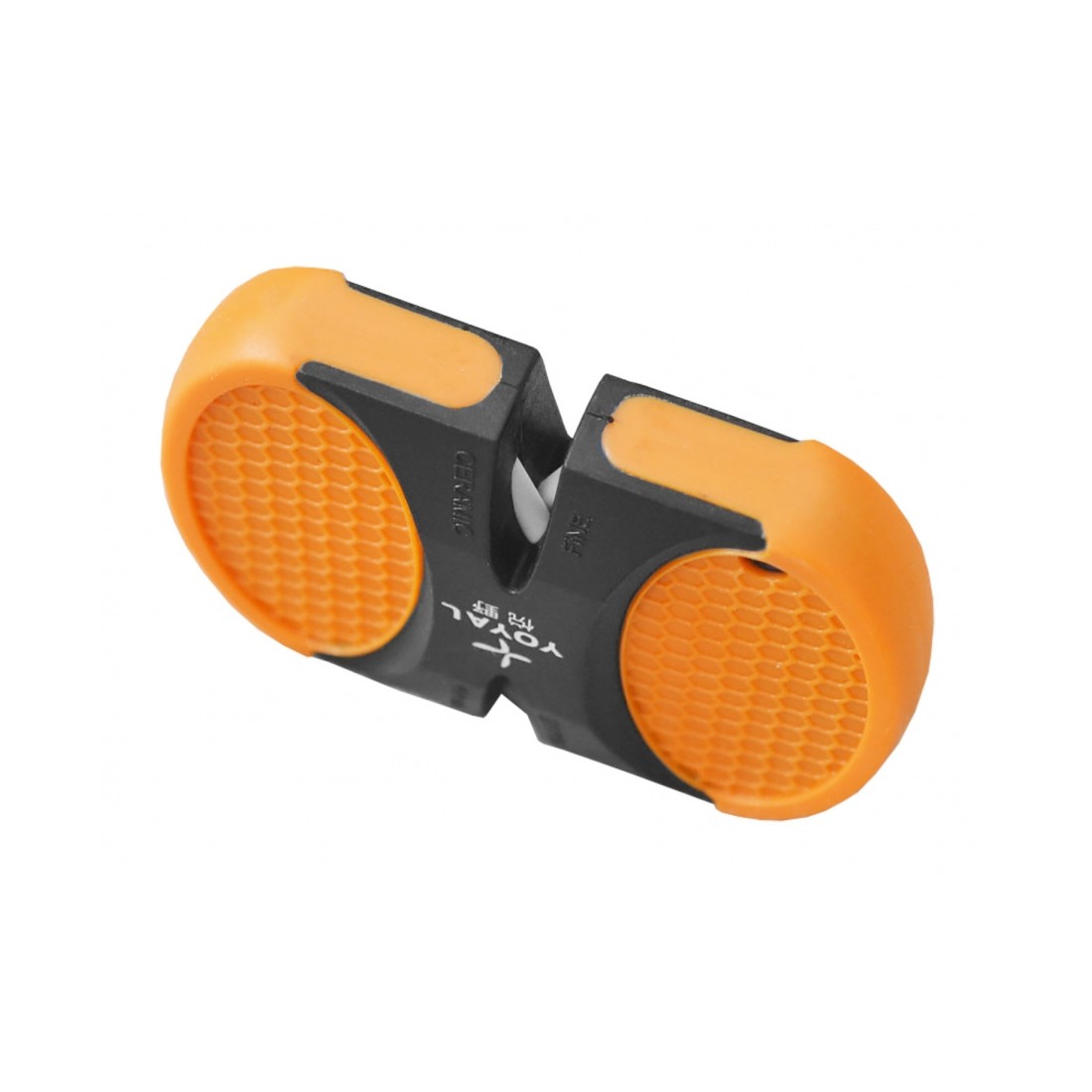 Poręczna mini ostrzałka z dwustopniowym systemem ostrzenia V. Węgliki spiekane nadają krawędź, ceramika wygładza. Obudowa ABS i łańcuszek ułatwiają użycie w kuchni i w terenie. Idealna dla kucharzy, myśliwych i użytkowników EDC.