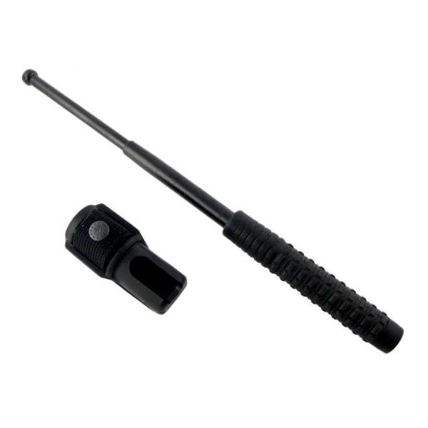 ESP Baton 16 cali z hartowanej stali to kompaktowa pałka teleskopowa do dyskretnego przenoszenia. Oksydowana na czarno, odporna na ścieranie, z pewnym antypoślizgowym chwytem. Idealna do samoobrony, dla służb, ochrony, kierowców i jako element EDC. W zestawie kabura na pas.