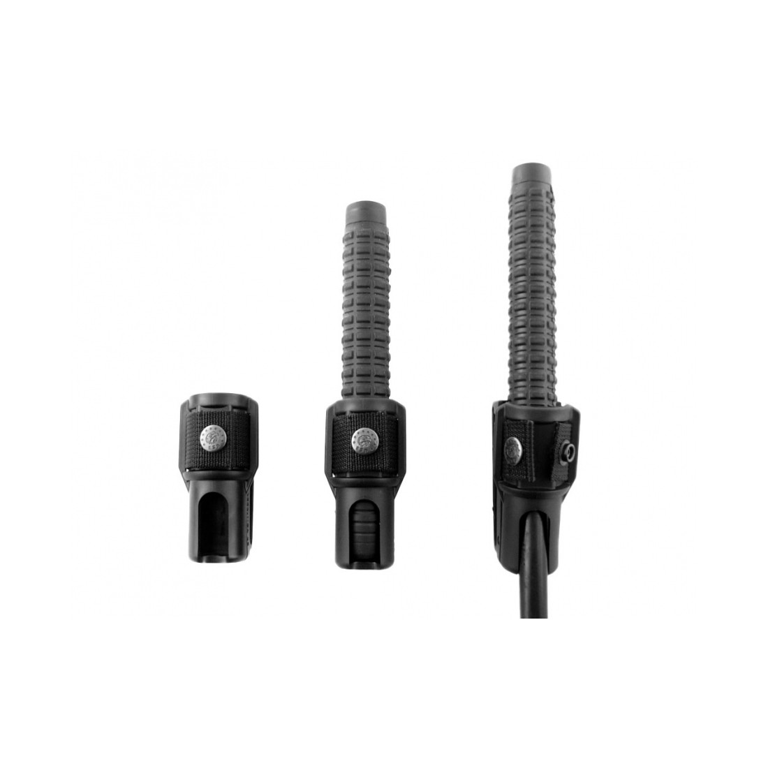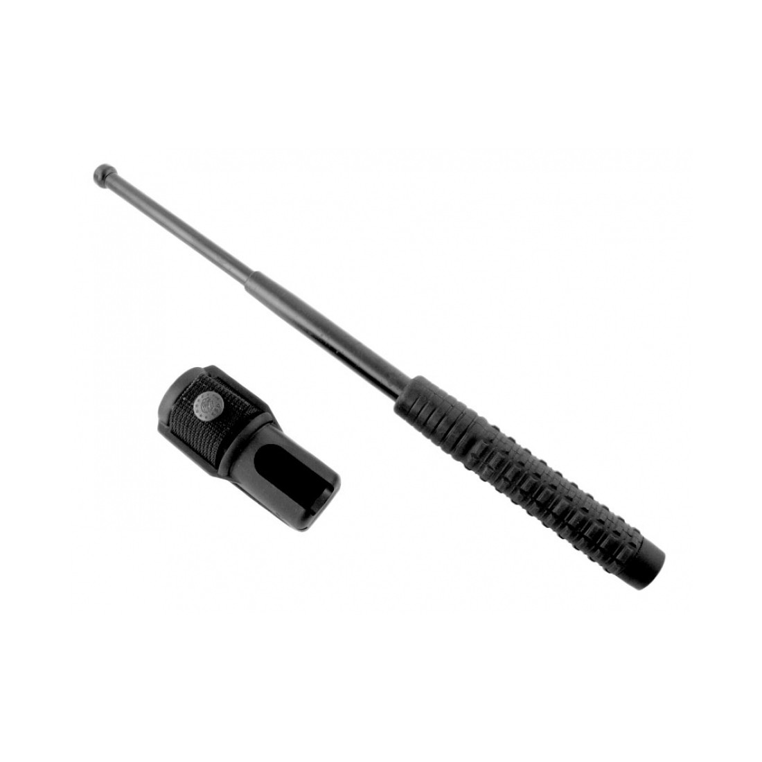 To jedno z najbardziej skutecznych narzędzi w obronie koniecznej i awaryjnych sytuacjach. Ten najmniejszy model, doskonale nadaje się do dyskretnego przenoszenia. Skonstruowana z trzech stalowych prętów. Powłoka z oksydy o dużej odporności na ścieranie. Rękojeść z elastycznego tworzywa o antypoślizgowej fakturze uniemożliwia odebranie pałki przez napastnika. Kabura z otworem na pas umożliwia przenoszenie w stanie złożonym, lub rozłożonym.