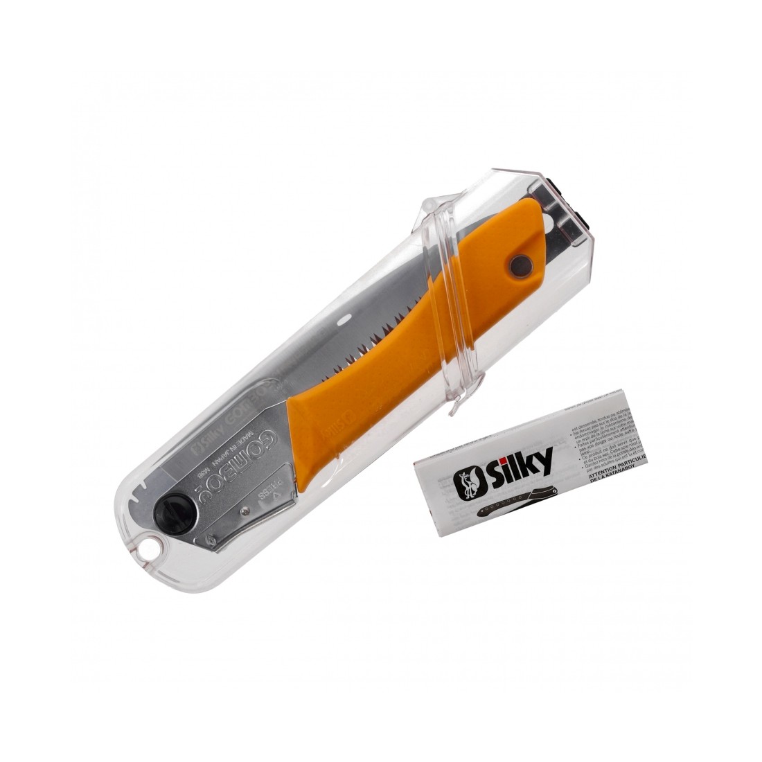 Piła jest składana w taki sposób, by agresywne zęby były bezpiecznie schowane wewnątrz rękojeści. Mechanizm blokujący pozwala na zablokowanie brzeszczotu w dwóch różnych pozycjach, w zależności od sytuacji i warunków pracy. W modelu Gomboy zastosowano polipropylenową rękojeść, która gwarantuje wysoką przyczepność bez względu na warunki atmosferyczne. W zestawie otrzymujemy praktyczne zamykane etui, z przeźroczystego tworzywa, które zabezpiecza narzędzie podczas transportu w plecaku lub skrzynce narzędziowej.