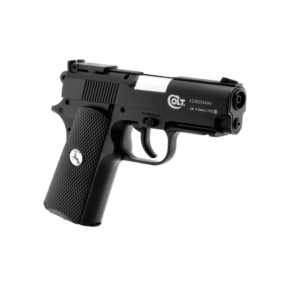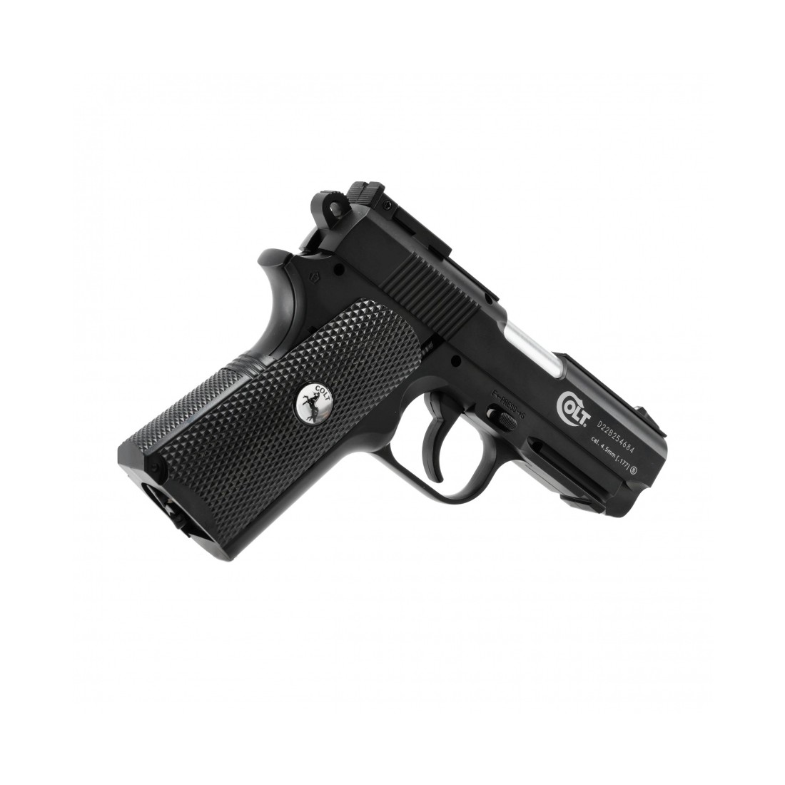Colt Defender 4,5 mm BB CO2 to kompaktowy pistolet wiatrówkowy o metalowej konstrukcji, wyposażony w regulowaną szczerbinę, zintegrowany magazynek, system szybkiej wymiany kapsuły oraz szynę Picatinny do montażu dodatkowych akcesoriów. Colt Defender 4,5 mm BB CO2 to poręczna wiatrówka zasilana kapsułą CO2 12 g, która wyróżnia się precyzyjnym wykończeniem oraz dużą dbałością o detale. Pistolet wykonano w całości z metalu (poza okładzinami rękojeści), co wpływa na jego ciężar wynoszący 724 g. Taka budowa powoduje, że mamy nieodparte wrażenie obcowania z prawdziwą bronią, co z pewnością zainteresuje wszystkich pasjonatów strzelectwa i militariów.