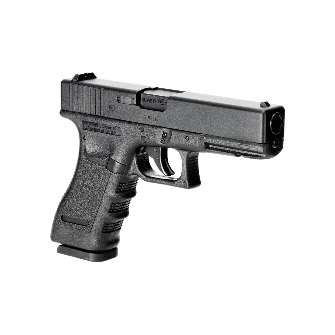 Wiatrówka Glock 17 posiada mechanizm spustowy DAO (z samonapinaniem ) oraz bezpiecznik spustowy, który zapobiega oddaniu przypadkowego strzału oraz wymusza prawidłowe ułożenia palca na języku spustowym. Rozwiązanie to jest zaimplementowane z mechanizmu Safe Action wykorzystywanego w serii Glock. Rękojeść ma profilowane wycięcia na palce oraz moletowanie wzorowane na Glock 17 generacji 3. Pistolet wykorzystuje stałe przyrządy celownicze tj. muszkę z białą kropką oraz szczerbinkę z obwódką. Kontrastowe oznaczenia przyspieszają zgrywanie przyrządów, pozwalają także na strzelanie przy słabym lub szczątkowym świetle. W przedniej części szkieletu znajduje się krótka szyna montażowa Picatinny. pozwalająca mocować wybrane akcesoria strzeleckie np. laserowy wskaźnik celu lub latarkę. Na zamku oraz szkielecie naniesiono licencjonowane oznaczenia Glock oraz numer seryjny pistoletu.