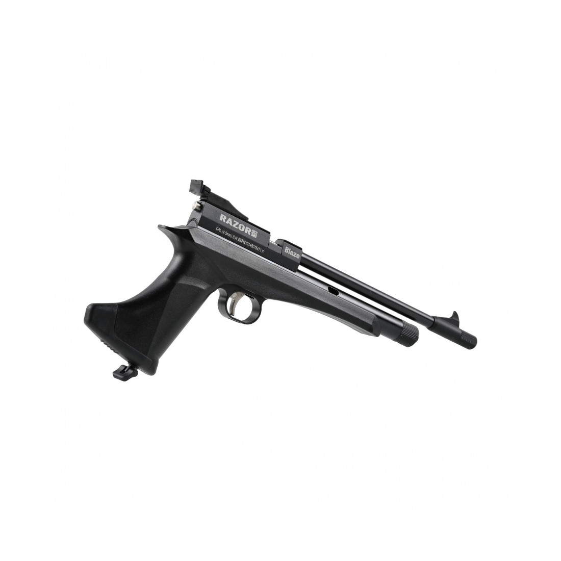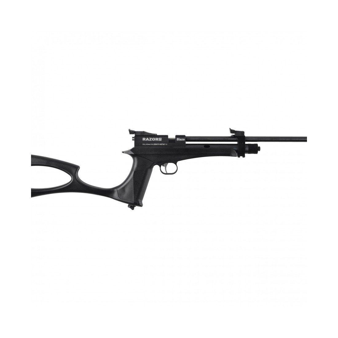 Model Blaze wyposażony został w bruzdowaną stalową lufę o długości 450 mm, która zapewnia stabilny tor lotu śrutu oraz precyzję porównywalną z droższymi konstrukcjami. Dodatkowym atutem jest metalowy tłumik – zmniejszający odgłos wystrzału i pełniący funkcję przeciwwagi, poprawiającej balans wiatrówki.
