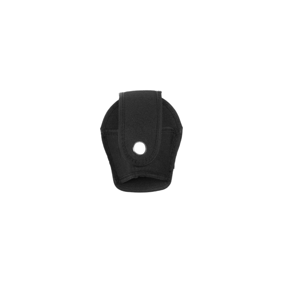 Pokrowiec na kajdanki wykonany jest w całości z cordury. Zapinany jest zatrzaskiem, z tyłu znajduje się element umożliwiający przypięcie pokrowca do paska.