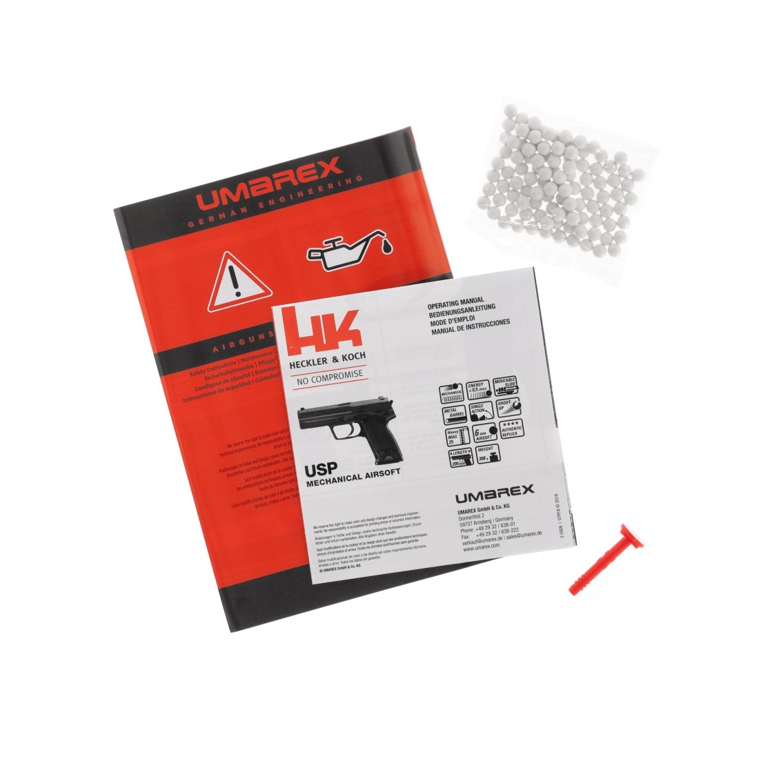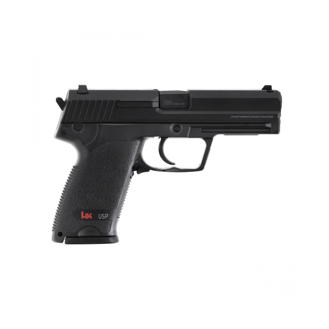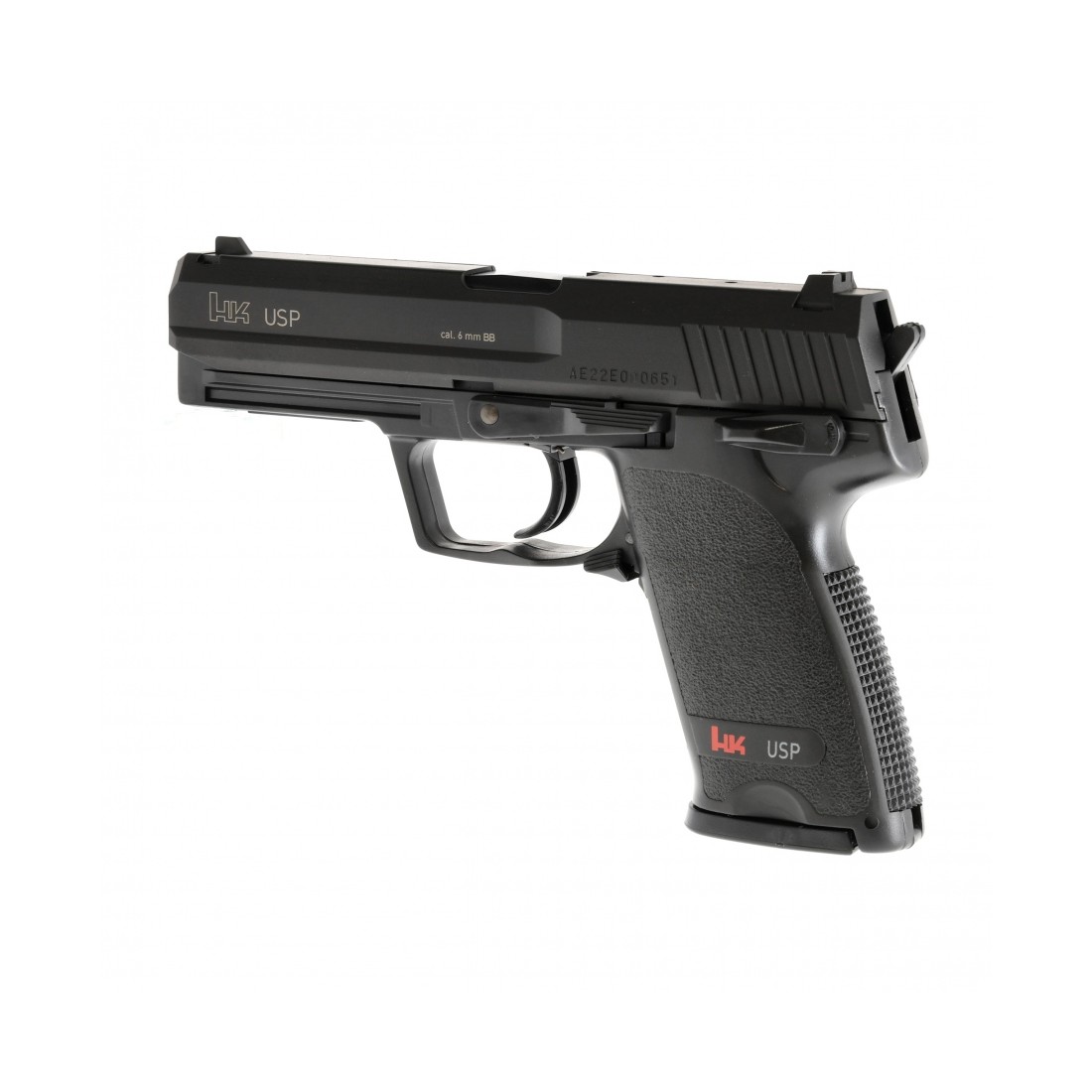 Pistolet ma system hop-up o stałym ustawieniu, który najlepiej sprawdza się podczas strzelania kulkami o ciężarze 0,12 g, zapewniając im płaską trajektorię i powtarzalną celność. Pistolet HK USP 6 mm jest zasilany z wysuwanego z rękojeści magazynka o pojemności aż 25 kulek, co zapewnia spory zapas przenoszonej amunicji. Replika asg ma bezpiecznik nastawny (z prawej strony szkieletu), który blokuje mechanizm spustowy i chroni przed oddaniem niekontrolowanego strzału.