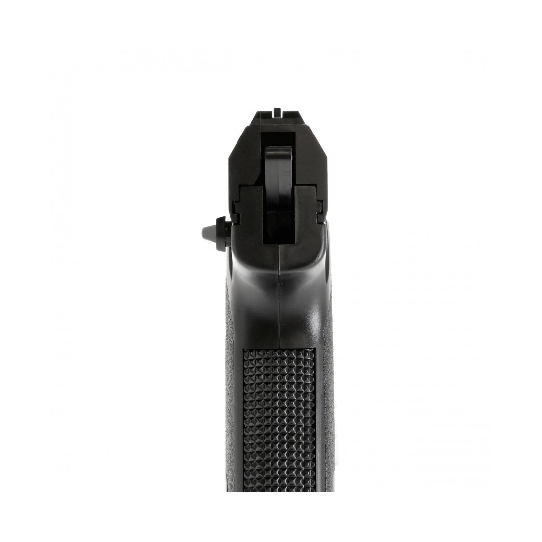 Profilowana rękojeść ma antypoślizgowe teksturowanie wzorowane na broni palnej. Dzięki licencjonowanym oznaczeniom replika wierniej odwzorowuje broń. Dbałość o zgodność z oryginałem dodatkowo podkreślają obustronna dźwignia zwalniania magazynka oraz bezpiecznik nastawny. W przedniej części szkieletu znajduje się szyna Picatinny umożliwiająca montaż dodatkowych akcesoriów np. laserowego wskaźnika celu lub latarki taktycznej.