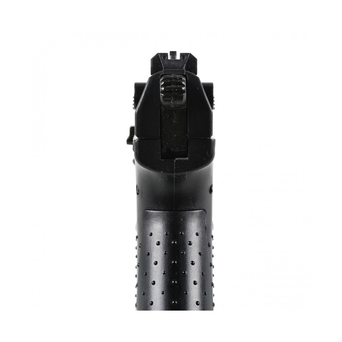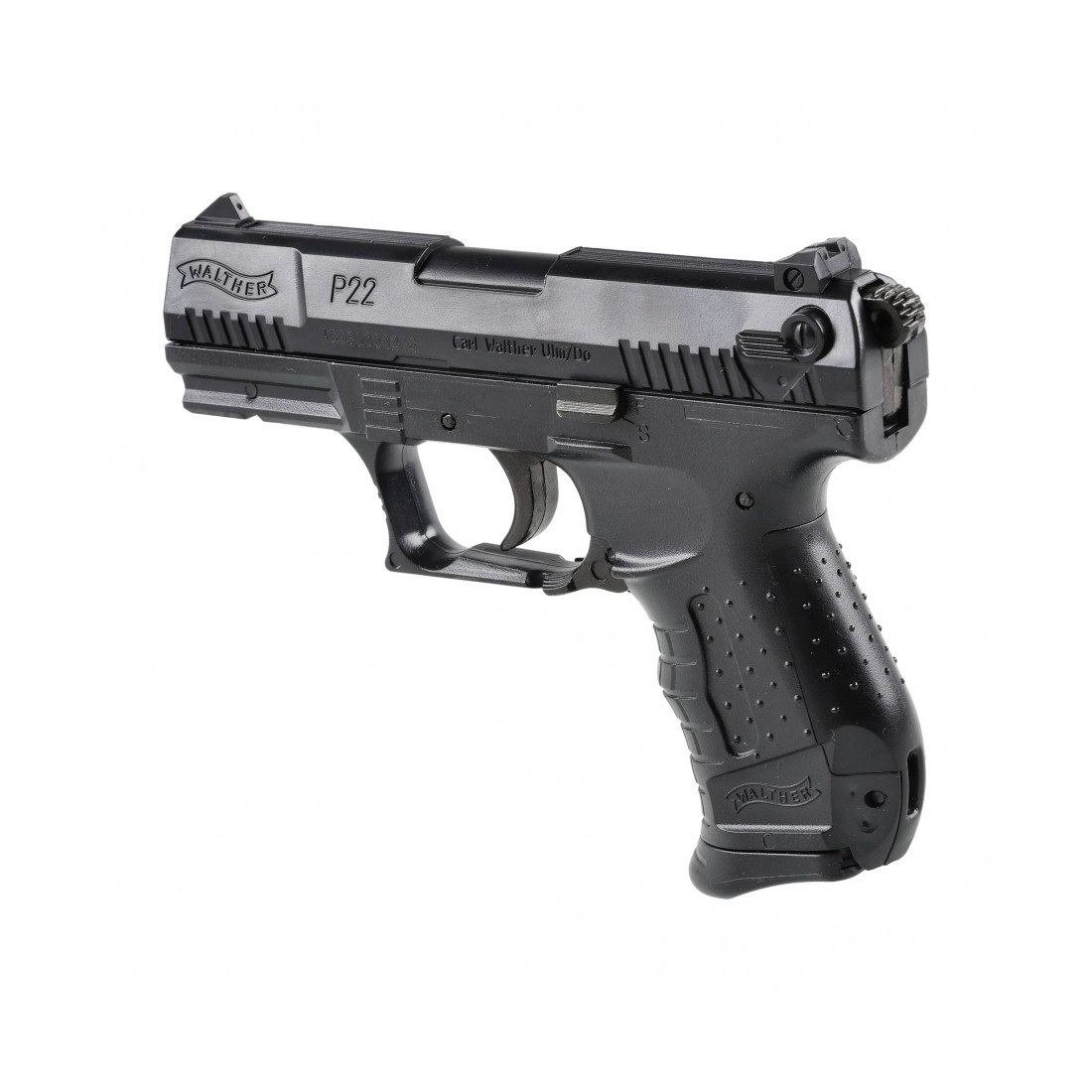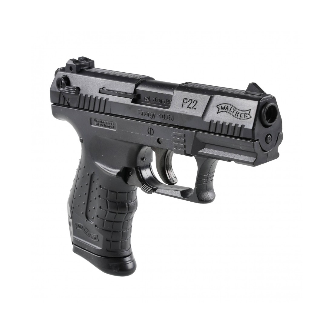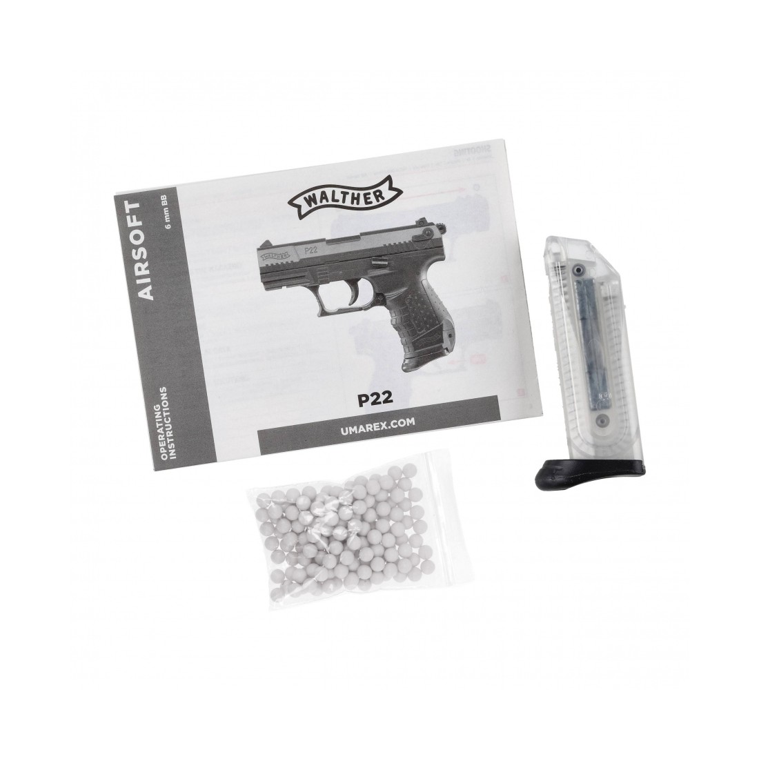 Pistolet posiada prędkość początkową 230 FPS, dzięki czemu możemy być idealnym rozwiązaniem jako pistolet boczny. Walther P22 posiada stałe przyrządy celownicze, a dzięki teksturowanemu chwytowi pistolet pewnie trzyma się w dłonie nawet w rękawiczkach. Pistolet tak jak w oryginalne posiada dźwignie blokady spustu umiejscowionej po lewej stronie repliki.