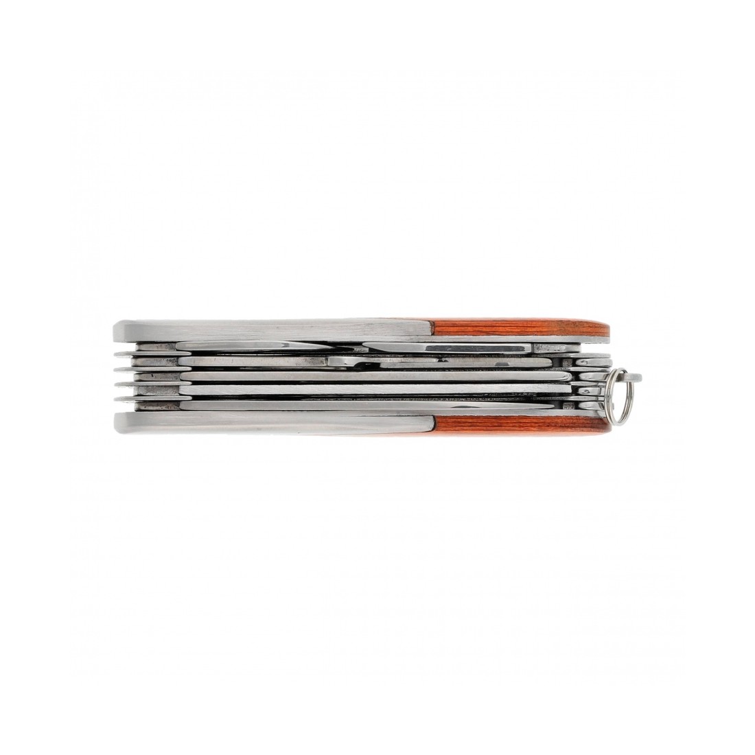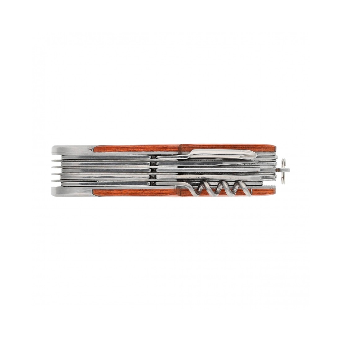✅ 14 funkcji: ostrze, nożyczki, pilnik, piła, korkociąg, otwieracze, śrubokręty, szydło, skrobak do ryb, ściągacz izolacji
