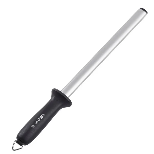 Poznaj Diamentową Stalkę Ostrzącą SHARPI, narzędzie stworzone z myślą o profesjonalnym ostrzeniu noży kuchennych wykonanych z twardej stali. Ta 25-centymetrowa stalka, pokryta w procesie galwanizacji drobinami diamentu syntetycznego o gradacji #600, jest synonimem najwyższej jakości i skuteczności. Dzięki niej Twoje noże odzyskają idealną ostrość, a praca w kuchni stanie się jeszcze przyjemniejsza.