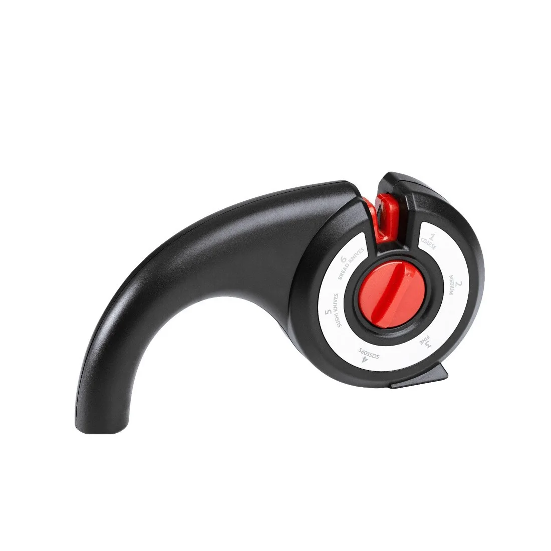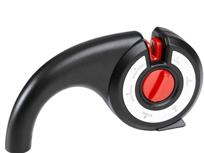 - Unikalny design koła ostrzącego: Ułatwia ostrzenie w obie strony, skracając czas potrzebny na naostrzenie noża.