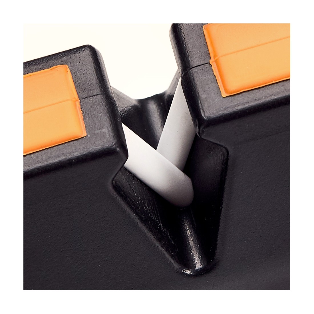 Antypoślizgowa obudowa z tworzywa sztucznego zapewnia pewny i komfortowy chwyt podczas ostrzenia. To gwarancja bezpieczeństwa i precyzji w każdych warunkach.