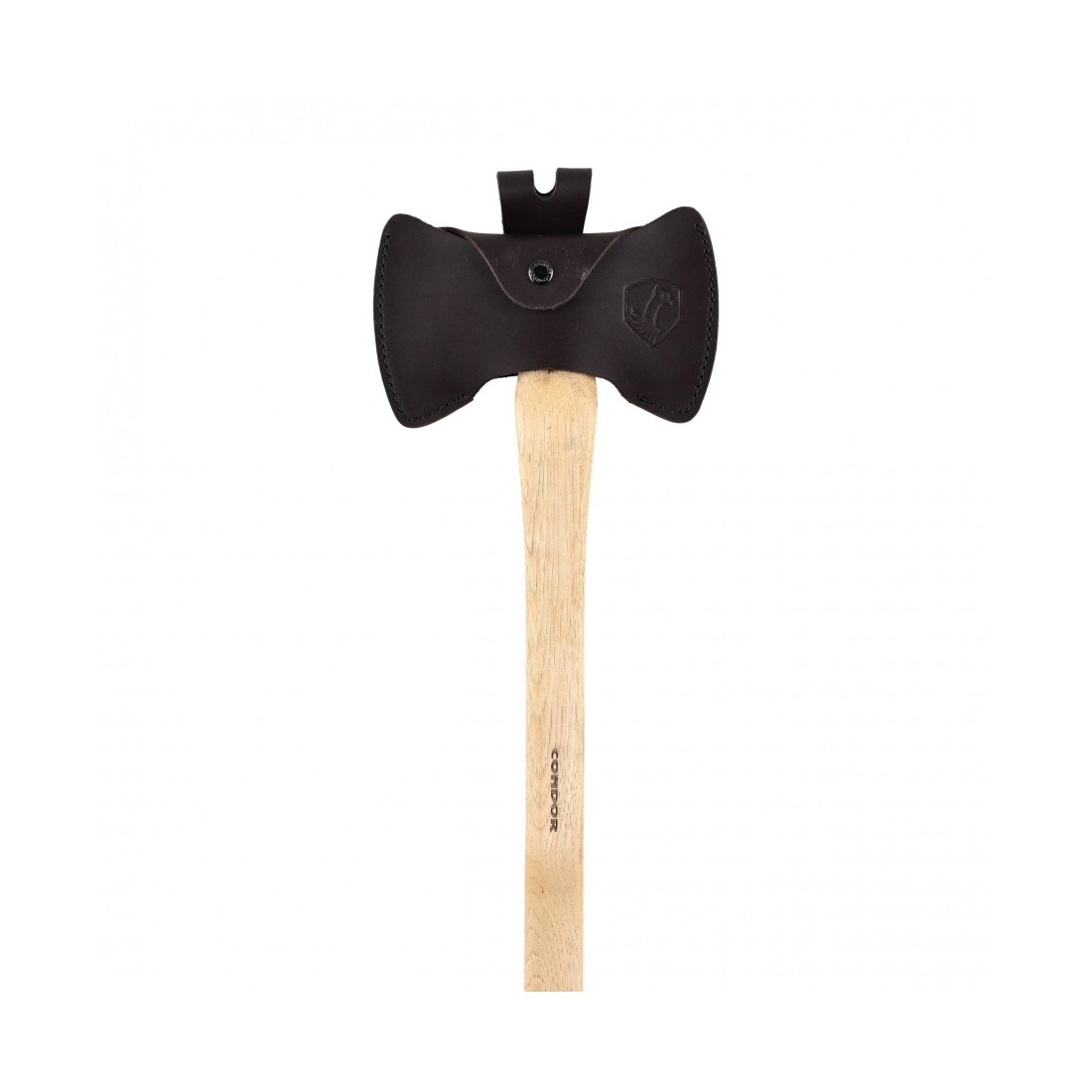 Wytrzymałe stylisko z opalanego drewna amerykańskiej hikory zapewnia doskonałą amortyzację drgań, wysoki komfort pracy oraz pewny chwyt. W tylnej części rękojeści umieszczono otwór na linkę zabezpieczającą, który zwiększa bezpieczeństwo użytkowania. W komplecie znajduje się ręcznie wykonana skórzana pochewka, umożliwiająca bezpieczny transport i przechowywanie siekiery.