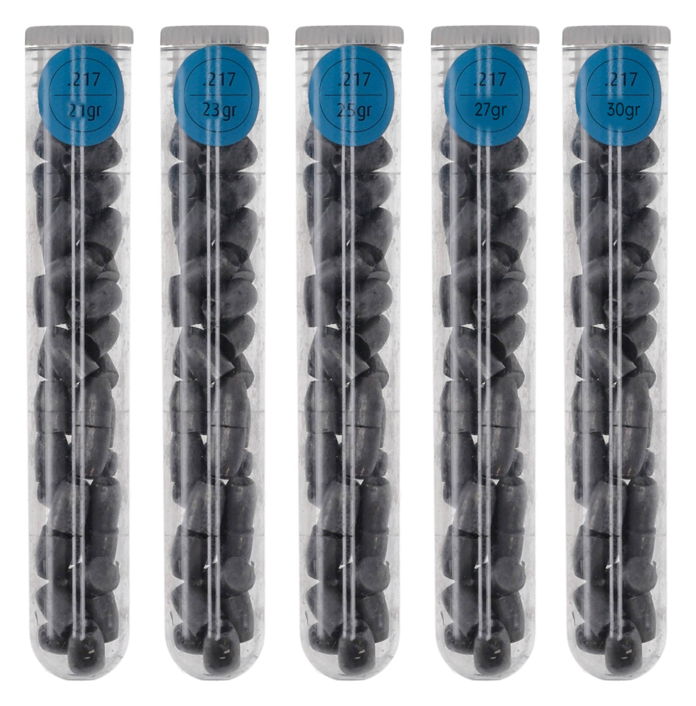 - Zestaw zawiera 5 różnych próbek wagowych pocisków.