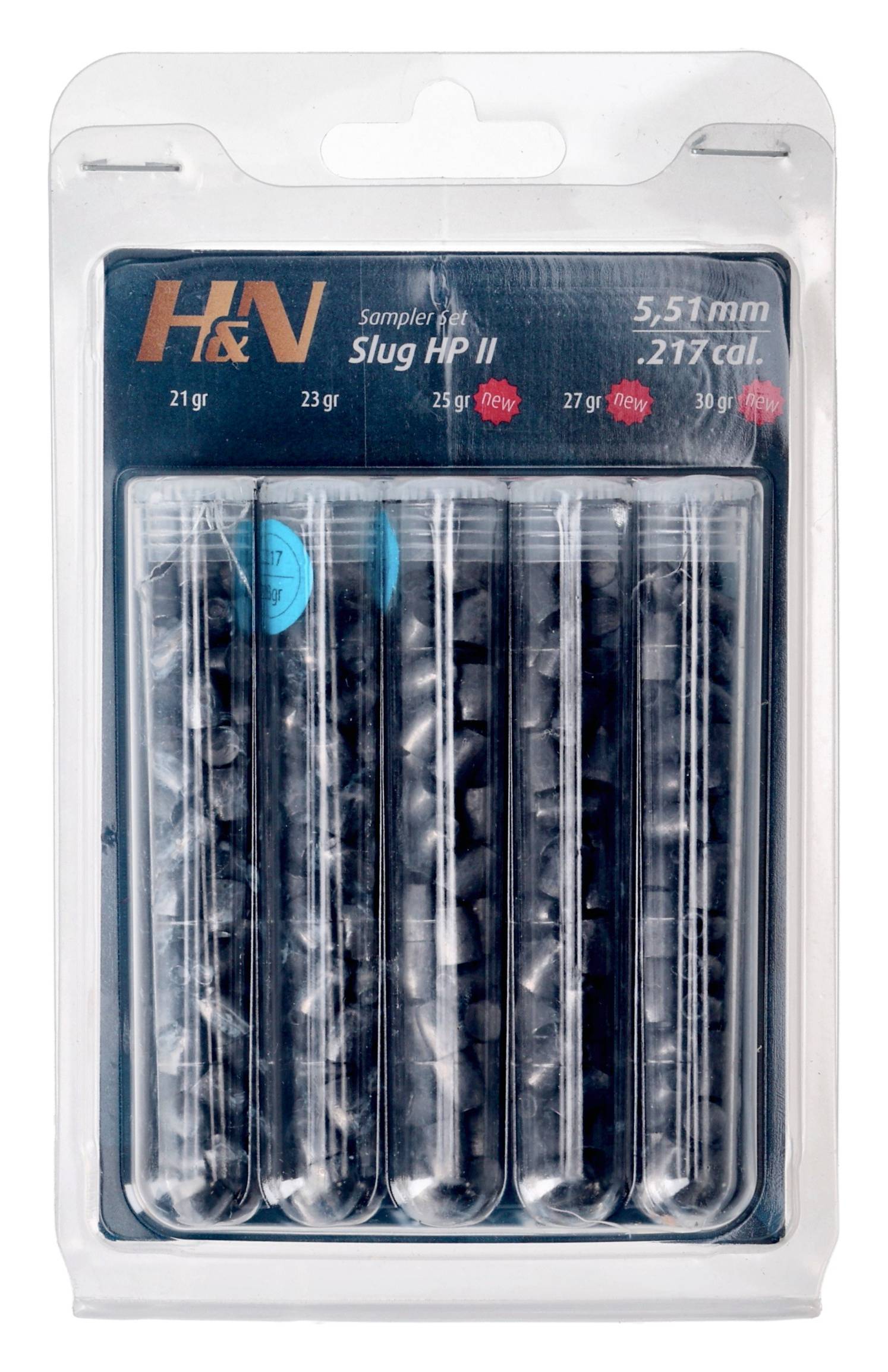 Śrut ołowiany H&N Tester Slug HP w kalibrze 5,51 mm (.22) to specjalna testowa amunicja ołowiana, przeznaczona do precyzyjnego strzelania na większe dystanse: rzędu 50, 100 czy nawet 200 metrów. Śrut ten jest przeznaczony do wiatrówek pneumatycznych i gazowych, które są kompatybilne z kalibrem 5,51 mm. Opakowanie zawiera w sobie 5 różnych próbek wagowych śrutu po 30 sztuk każda.