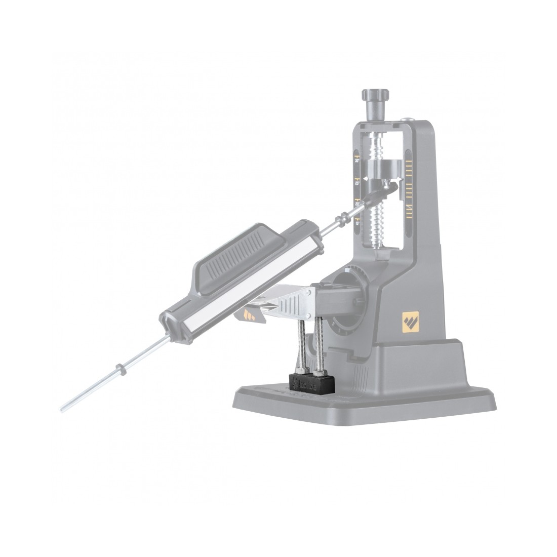 Regulowany stabilizator usztywnia ramię ostrzałki, zwiększając stabilność uchwytu noża i pozwalając zachować stały kąt ostrzenia. Dzięki temu praca jest bardziej precyzyjna i powtarzalna.