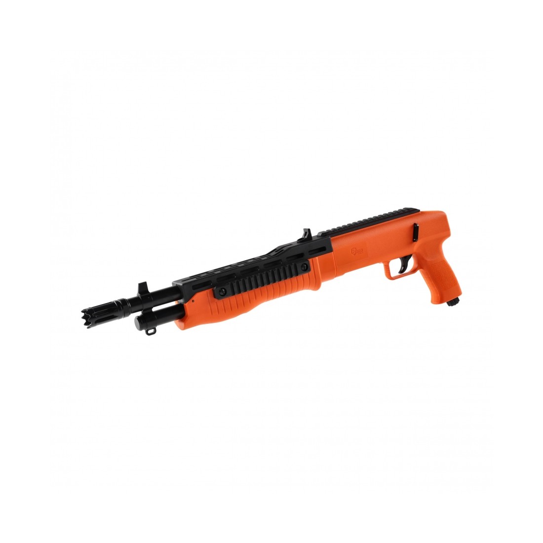 P2P HDB 68 kal. 68 CO2 to strzelba RAM w wersji skróconej, wyposażona w system szybkiego przebicia kapsuł, szyny akcesoryjne, system przeładowania pump-action oraz pojemny magazynek mieszczący aż 16 kul kalibru .68. Strzelba w pomarańczowej wersji kolorystycznej, która w stresującej sytuacji zagrożenia jest łatwiejsza do zlokalizowania, dzięki czemu zyskujemy czas na odparcie zagrożenia.