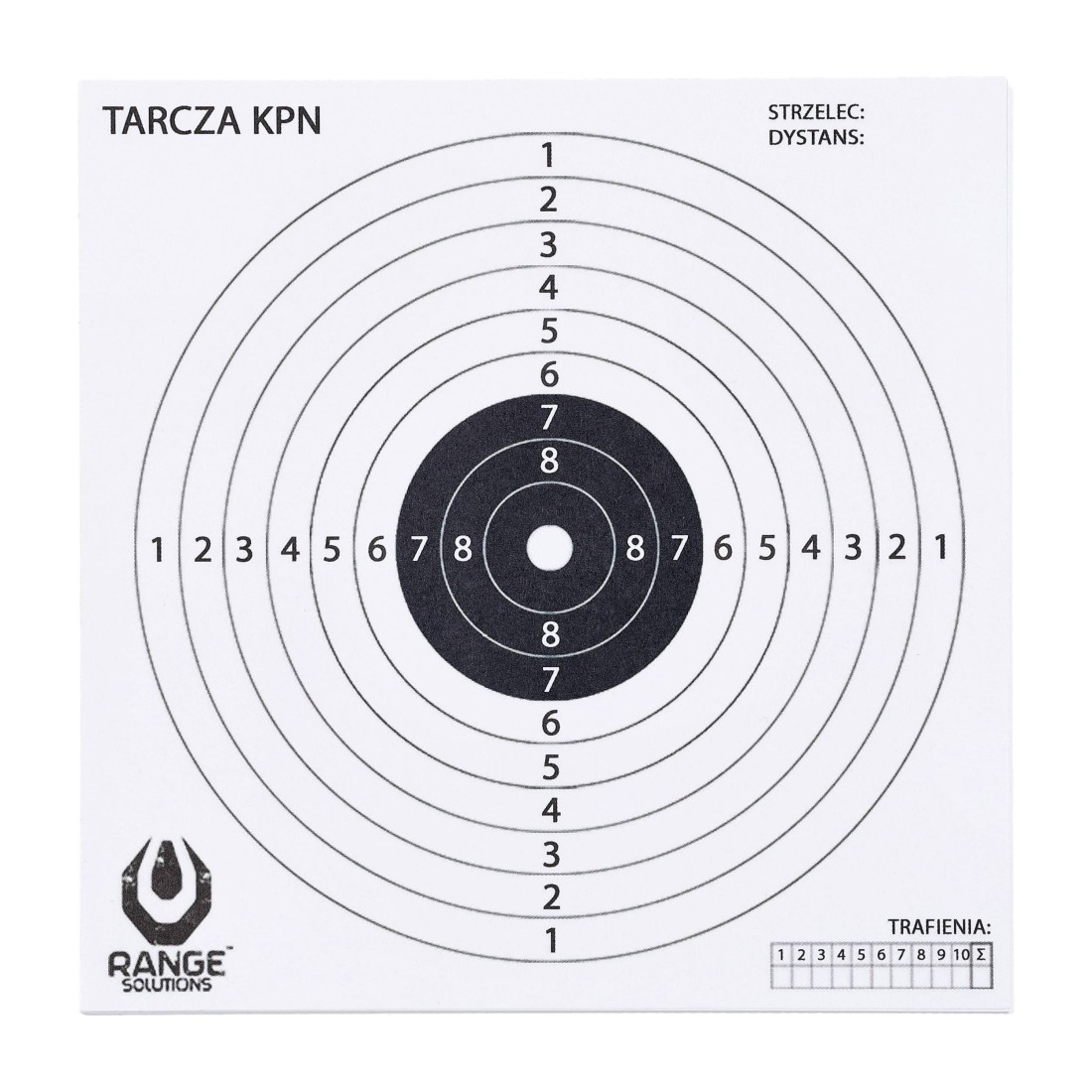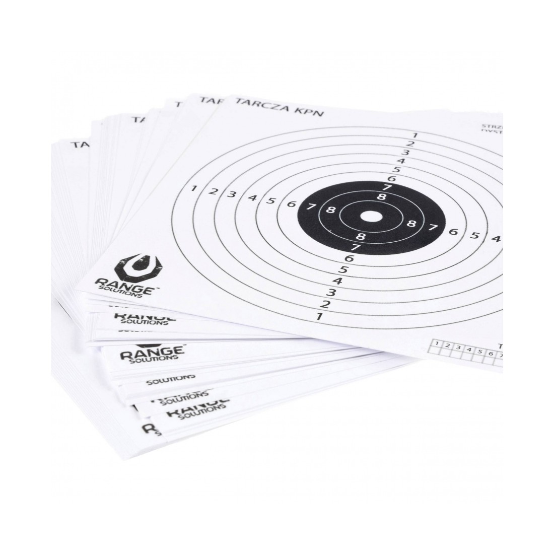 Tarcze do wiatrówki Range Solutions KPN wykonano z wysokiej jakości papieru offset 80 g. Zapewnia to optymalną widoczność punktów uderzenia i łatwe usuwanie śladów po kulach. Czarno-biała kolorystyka zapewnia wyraźny kontrast, ułatwiając identyfikację trafień.