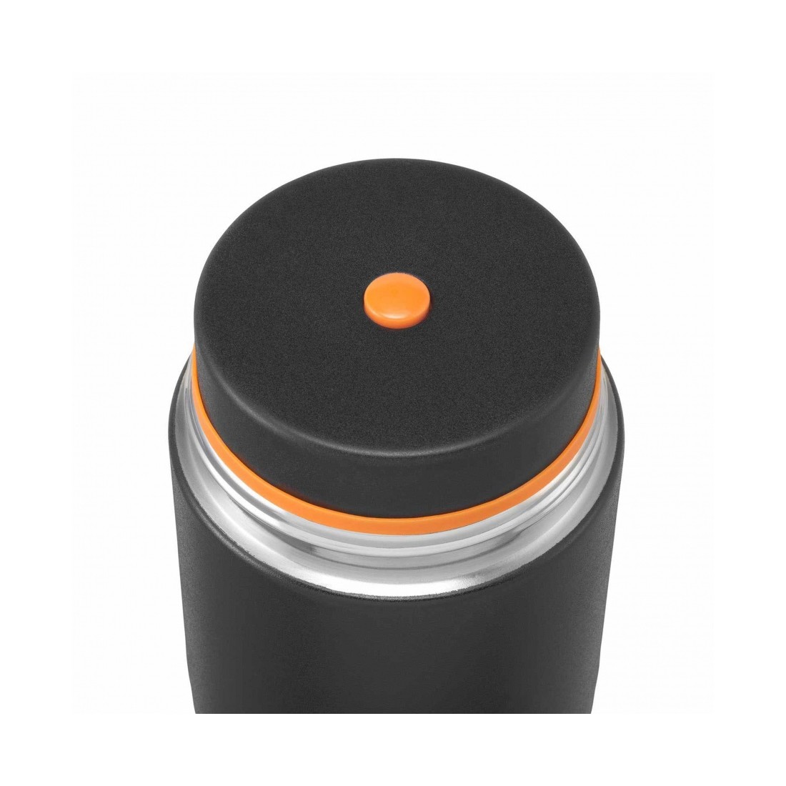 Szczelna zakrętka z przyciskiem wyrównania ciśnienia ułatwia otwieranie termosu, nawet gdy wewnątrz znajduje się gorący posiłek. Zewnętrzna nakrętka pełniąca funkcję miski zwiększa funkcjonalność zestawu i pozwala wygodnie zjeść posiłek bez potrzeby zabierania dodatkowych naczyń.