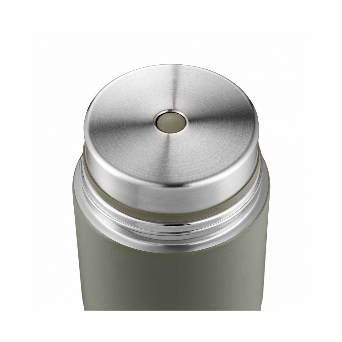 Termos wyposażono w zakrętkę oraz nakrętkę. Ta pierwsza posiada specjalny przycisk, rodzaj zaworu bezpieczeństwa, pozwalający wyrównać ciśnienie wewnątrz pojemnika. Dzięki temu termos łatwiej otworzyć. Użycie przycisku eliminuje też ryzyko poparzenia parą, która mogłaby buchnąć z wnętrza. Natomiast nakrętka nie tylko dodatkowo uszczelnia termos, ale może również służyć jako miska, dzięki czemu nie trzeba pamiętać o dodatkowych naczyniach.