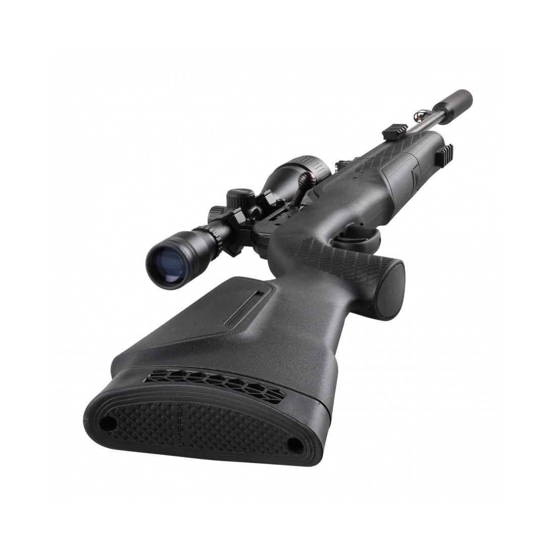 Umarex 850 M2 Target Kit 4,5 mm to zmodernizowana wersja popularnego modelu 850, wyposażona w kolbę z regulowaną baką policzkową, pojemny 8-strzałowy magazynek, lufę z gwintem zewnętrznym oraz komplet akcesoriów w postaci tłumika dźwięku, oraz celownika optycznego 6×42.