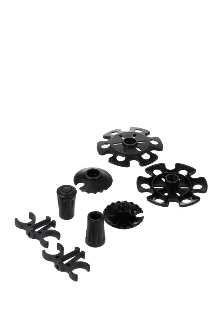 Ergonomiczne rączki wykonane z połączenia korka i pianki EVA zapewniają naturalne ułożenie dłoni, redukują potliwość i zmniejszają ryzyko otarć podczas długich tras. Wymienne talerzyki mocowane są na system gwintowy, co pozwala na ich szybką wymianę w zależności od warunków.