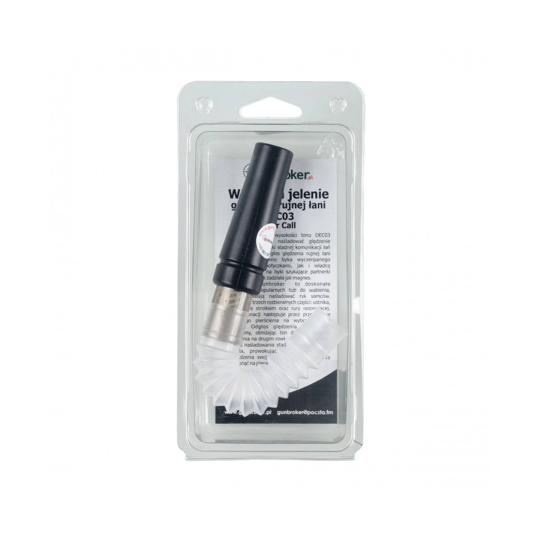 Dla byka szukającego partnerki odgłos ględzenia rujnej łani zadziała niczym magnes. Wabik Gunbroker DEC03 doskonałe uzupełnia popularne tub do wabienia, które służą do naśladowania ryku samców. Wabik na jelenie DEC03 ma modułową konstrukcję składającą się z 3 części: ustnika, uchwytu ze stroikiem oraz tuby rezonującej.