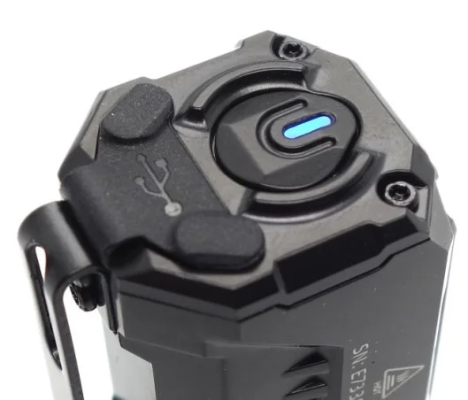WUBEN E7 posiada wskaźniki diodowe, które informują o stanie naładowania akumulatora. Czerwone światło oznacza, że ładowanie jest w toku, natomiast niebieskie światło wskazuje, że akumulator jest w pełni naładowany i gotowy do użycia. Dzięki temu użytkownik zawsze wie, kiedy latarka jest gotowa do pracy.