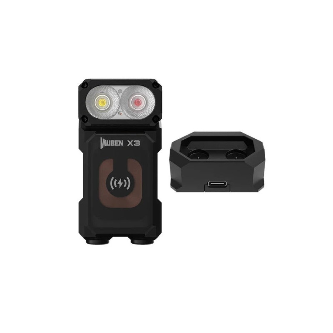 Wuben X3 (Black) – Wszechstronna kompaktowa latarka EDC z obrotową głowicą, światłem czerwonym i bezprzewodowym ładowaniem