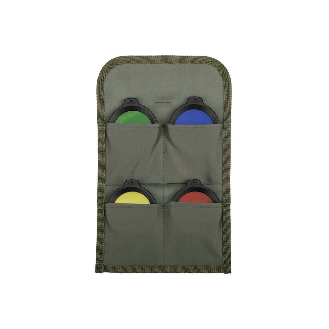Filtry zamknięto w adapterze o średnicy 68 mm i wadze zaledwie 13,8 g – nie obciążają wyposażenia, a montaż jest szybki i intuicyjny. Całość mieści się w wytrzymałym etui o kompaktowych wymiarach, które bez problemu schowasz w plecaku czy torbie. Niezależnie od tego, czy jesteś w lesie, na polowaniu, czy w trakcie nocnych działań terenowych, zawsze masz pod ręką narzędzie, które pozwoli Ci dopasować oświetlenie do sytuacji.