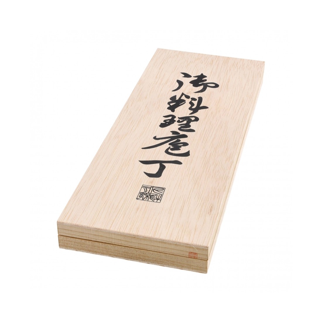 Zestaw 2 noży Satake Megumi Classic Santoku / Classic Nakiri to komplet japońskich noży kuchennych zapakowanych w eleganckie drewniane pudełko, dzięki czemu stanowią idealny pomysł na prezent dla każdego pasjonata gotowania.