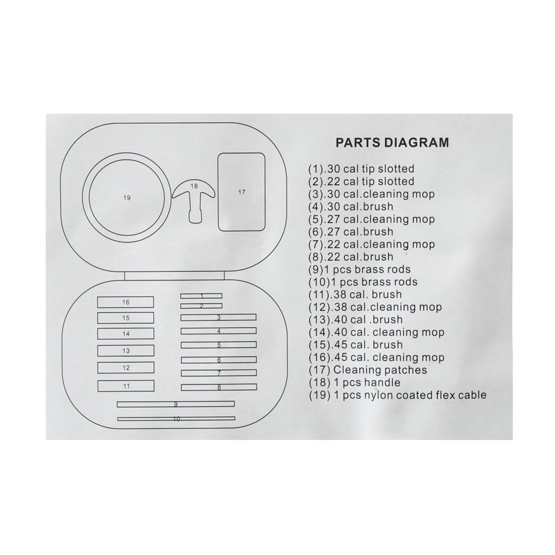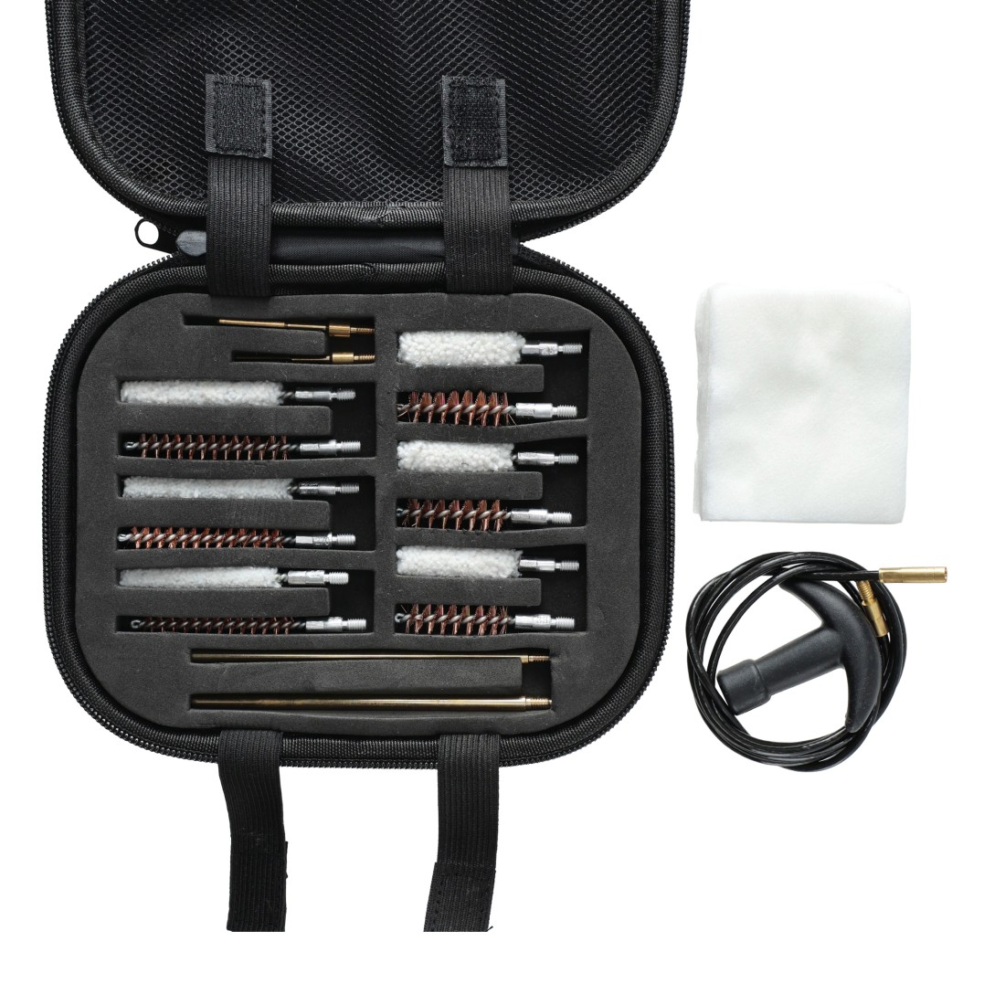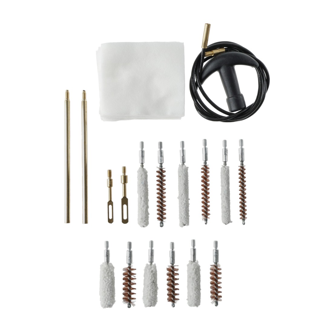 - Kompletny zestaw do czyszczenia broni w kalibrach od .22 do .45.